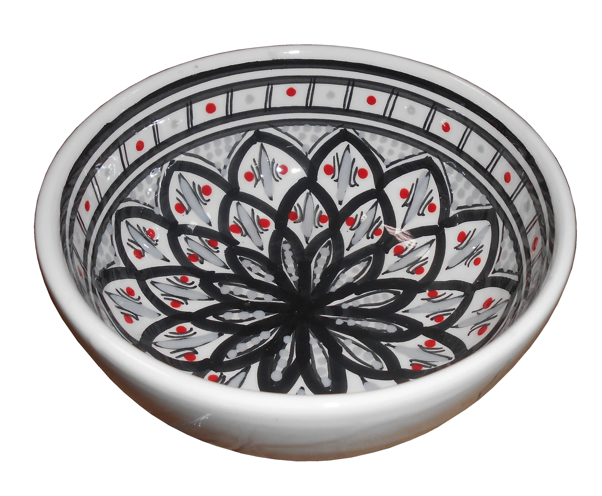 Zwraca uwagę piękne wzornictwo i bogata arabska kolorystyka. Miseczka malowana jest w berberyjskie wzory. Przepiękna, niebanalna ozdoba Twojego stołu - ozdobny,a jednocześnie funkcjonalny gadżet pochodzący z Tunezji.