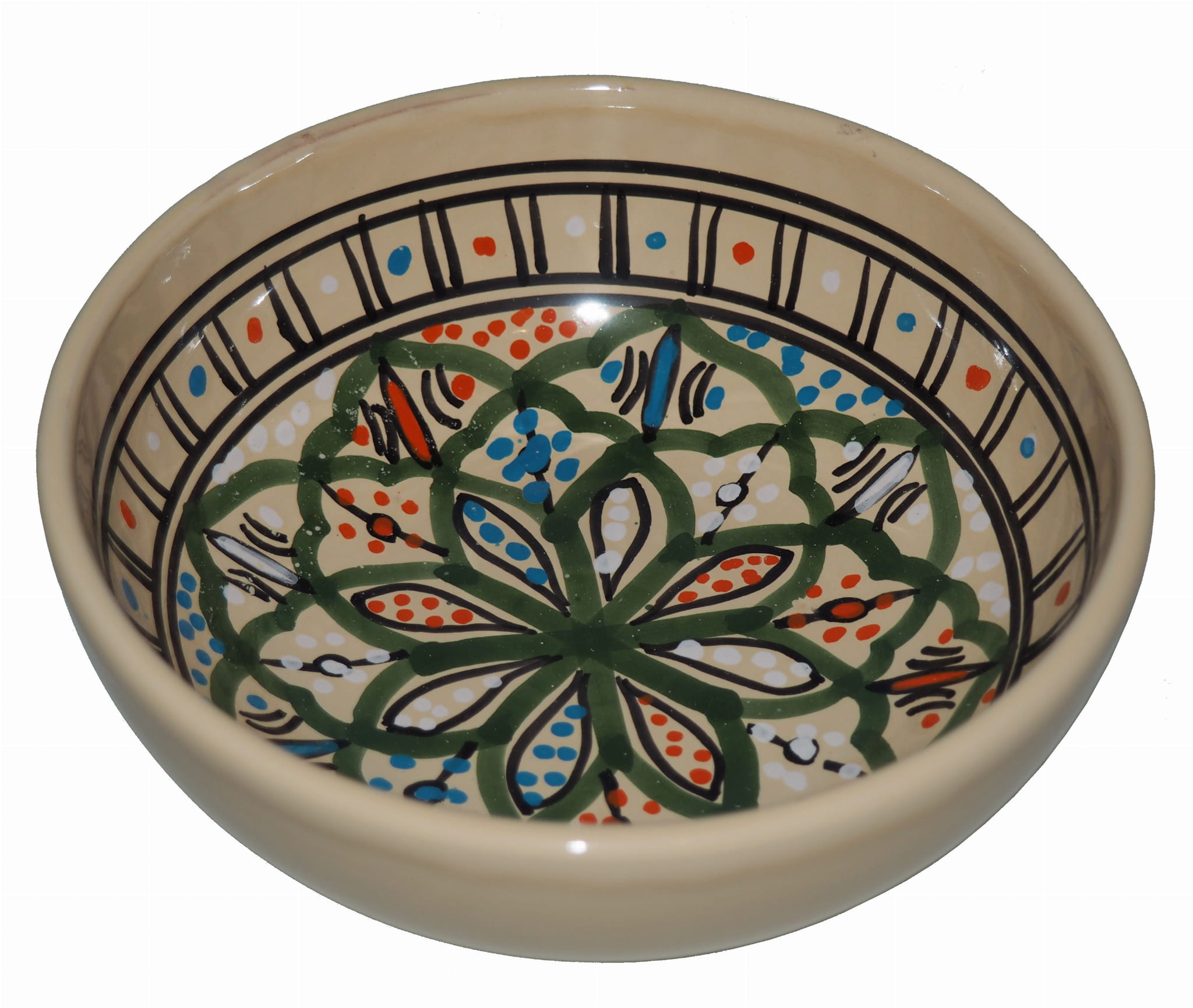 Wszystkie sprzedawane przez nas produkty ceramiczne pochodzą z małych rodzinnych "fabryczek" berberyjskich - produkty te są wykonane i malowane ręcznie. Wszystkie umieszczone na nich wzory to tradycyjne motywy arabskie i berberyjskie.