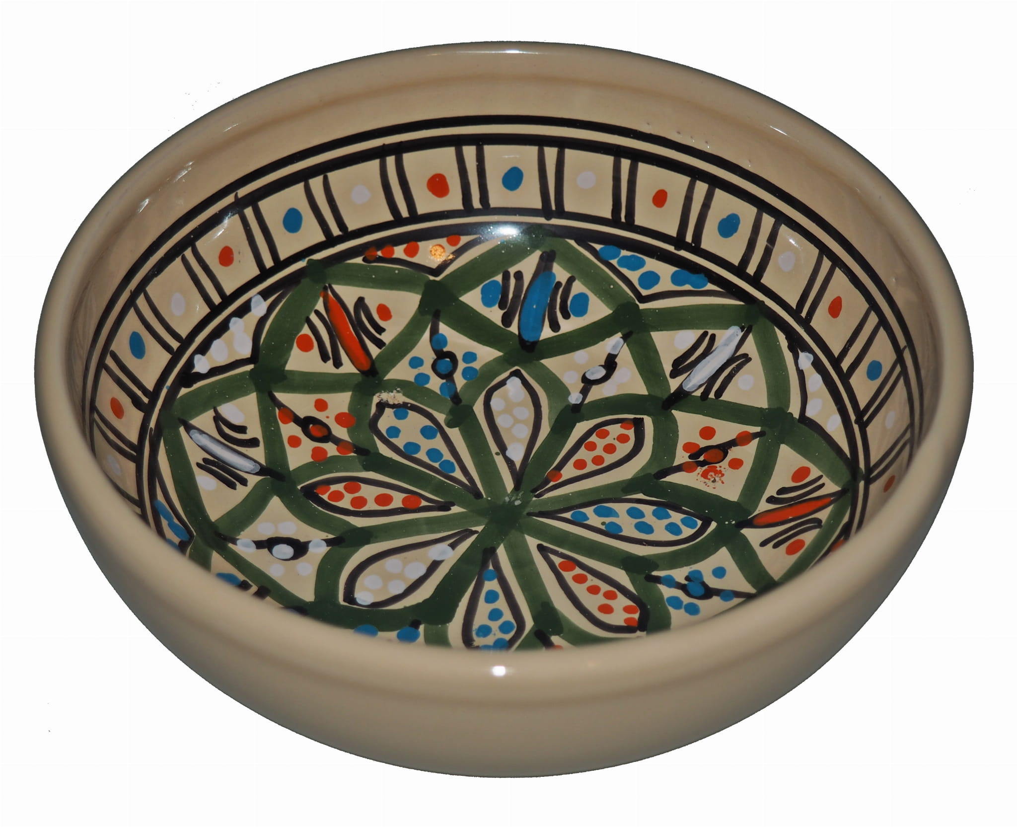 Wszystkie sprzedawane przez nas produkty ceramiczne pochodzą z małych rodzinnych "fabryczek" berberyjskich - produkty te są wykonane i malowane ręcznie. Wszystkie umieszczone na nich wzory to tradycyjne motywy arabskie i berberyjskie.
