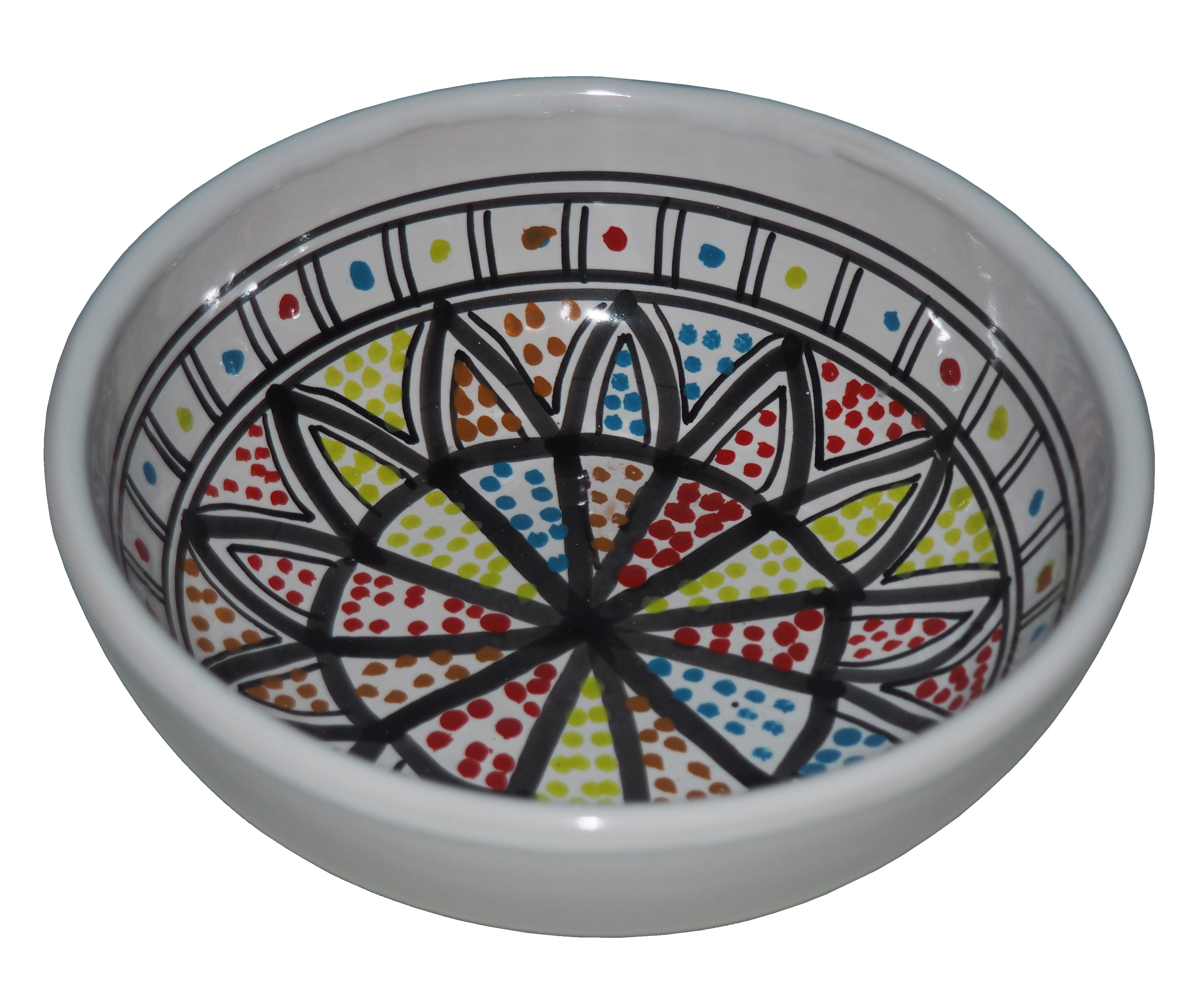 Zwraca uwagę piękne wzornictwo i bogata arabska kolorystyka. Miseczka malowana jest w berberyjskie wzory. Przepiękna, niebanalna ozdoba Twojego stołu prosto z Tunezji.