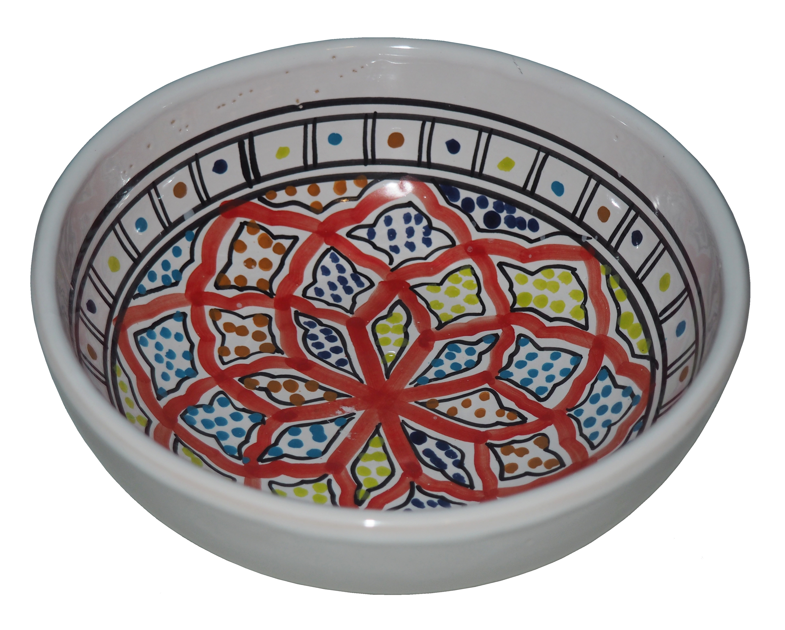 Zwraca uwagę piękne wzornictwo i bogata arabska kolorystyka. Miseczka malowana jest w berberyjskie wzory. Przepiękna, niebanalna ozdoba Twojego stołu prosto z Tunezji.