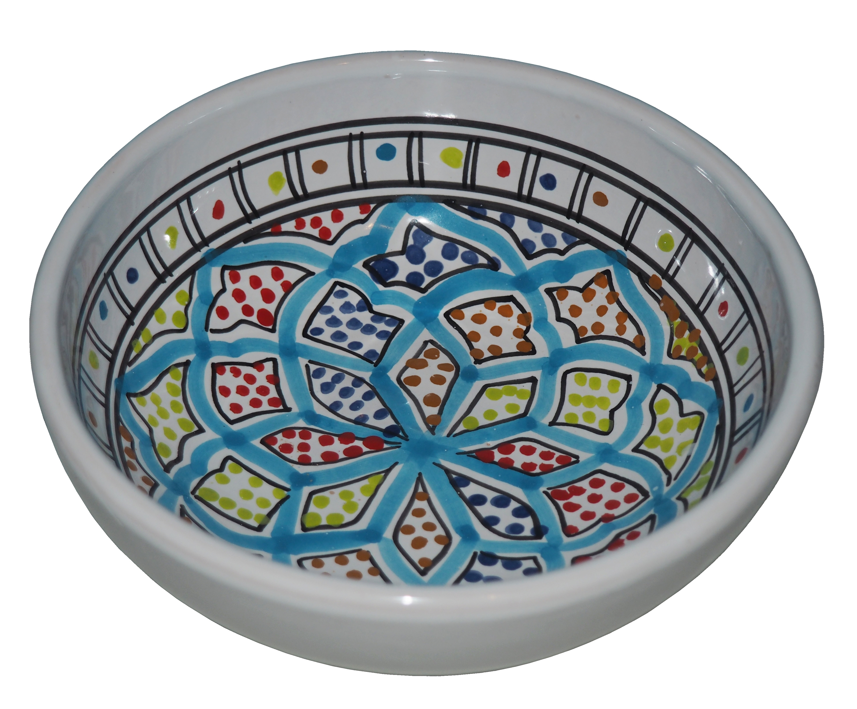 Wszystkie sprzedawane przez nas produkty ceramiczne pochodzą z małych rodzinnych "fabryczek" berberyjskich - produkty te są wykonane i malowane ręcznie. Wszystkie umieszczone na nich wzory to tradycyjne motywy arabskie i berberyjskie.