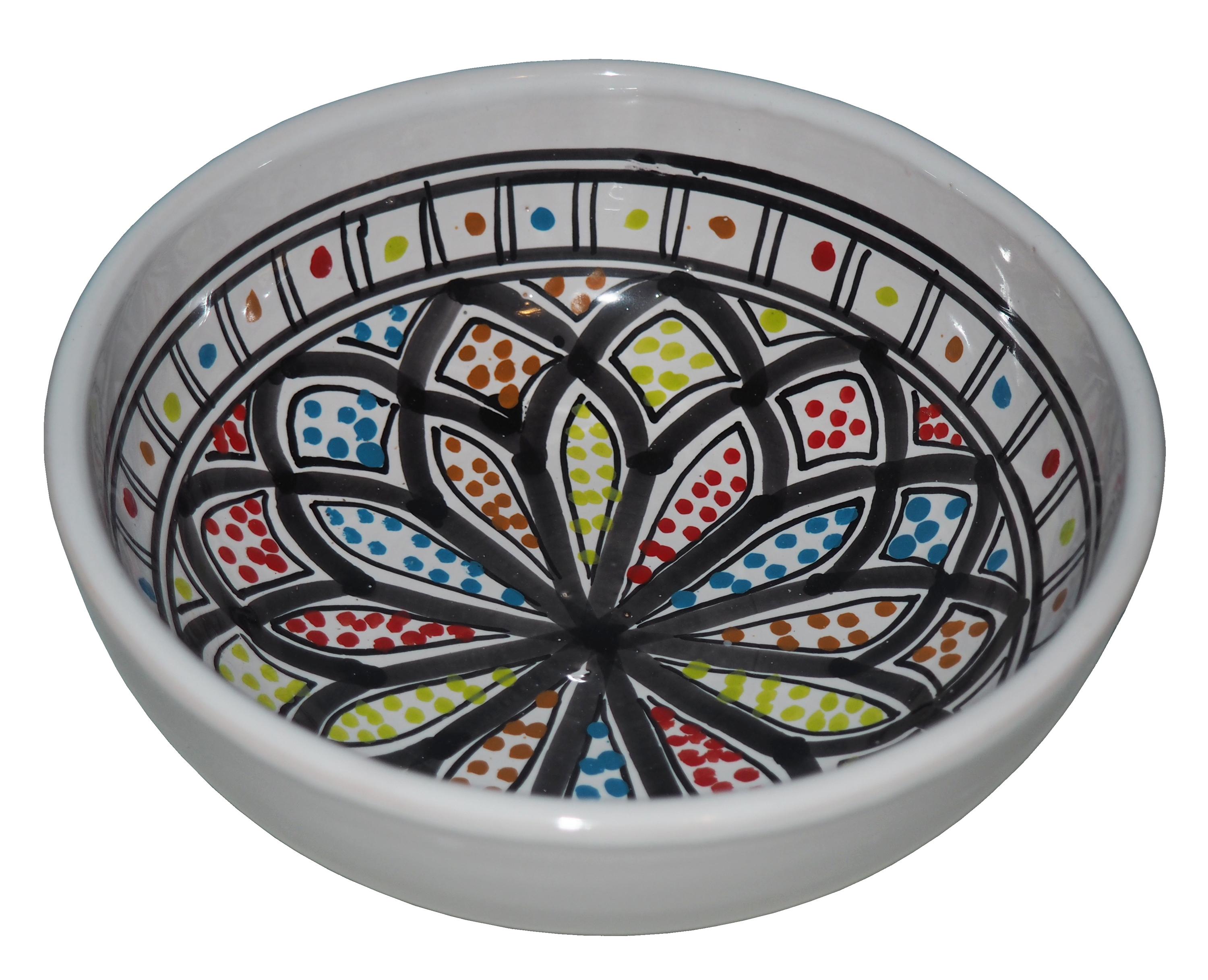 Zwraca uwagę piękne wzornictwo i bogata arabska kolorystyka. Miseczka malowana jest w berberyjskie wzory. Przepiękna, niebanalna ozdoba Twojego stołu prosto z Tunezji.