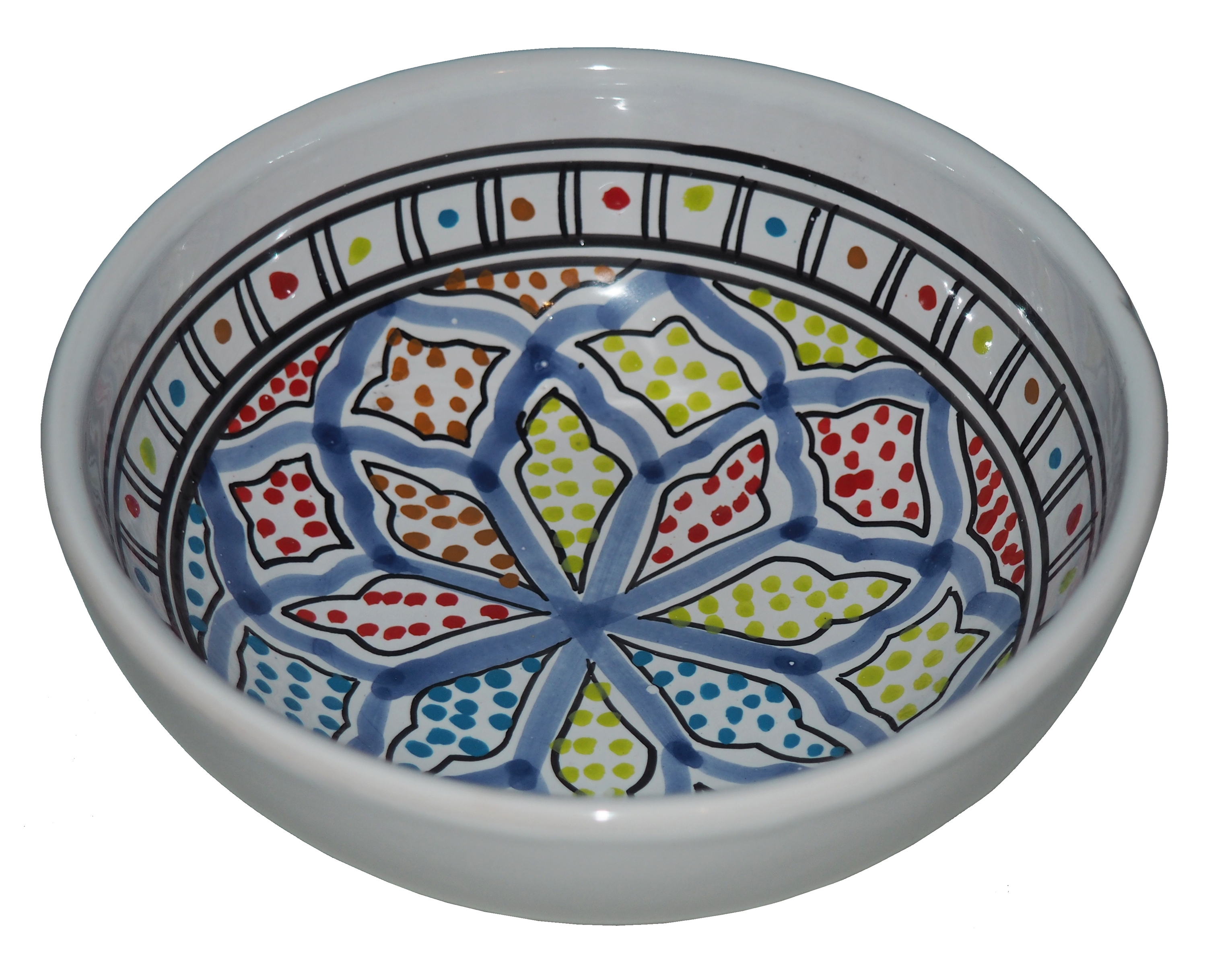 Zwraca uwagę piękne wzornictwo i bogata arabska kolorystyka. Miseczka malowana jest w berberyjskie wzory. Przepiękna, niebanalna ozdoba Twojego stołu prosto z Tunezji.