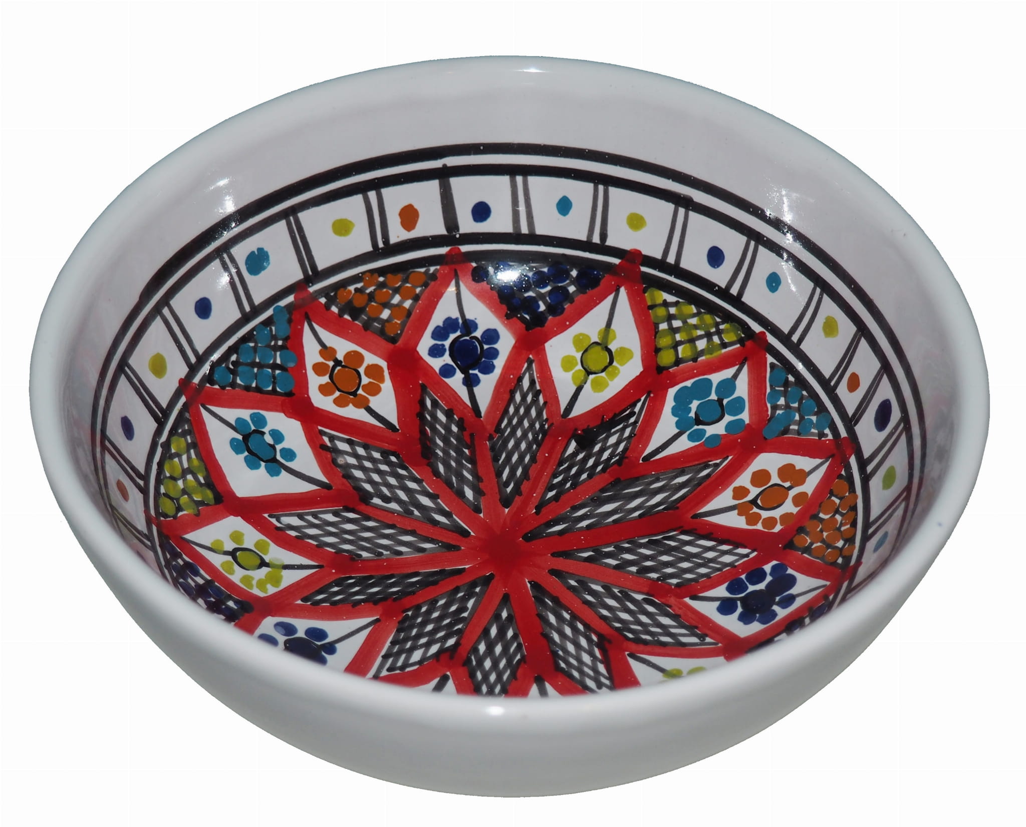 Zwraca uwagę piękne wzornictwo i bogata arabska kolorystyka. Miseczka malowana jest w berberyjskie wzory. Przepiękna, niebanalna ozdoba Twojego stołu prosto z Tunezji.