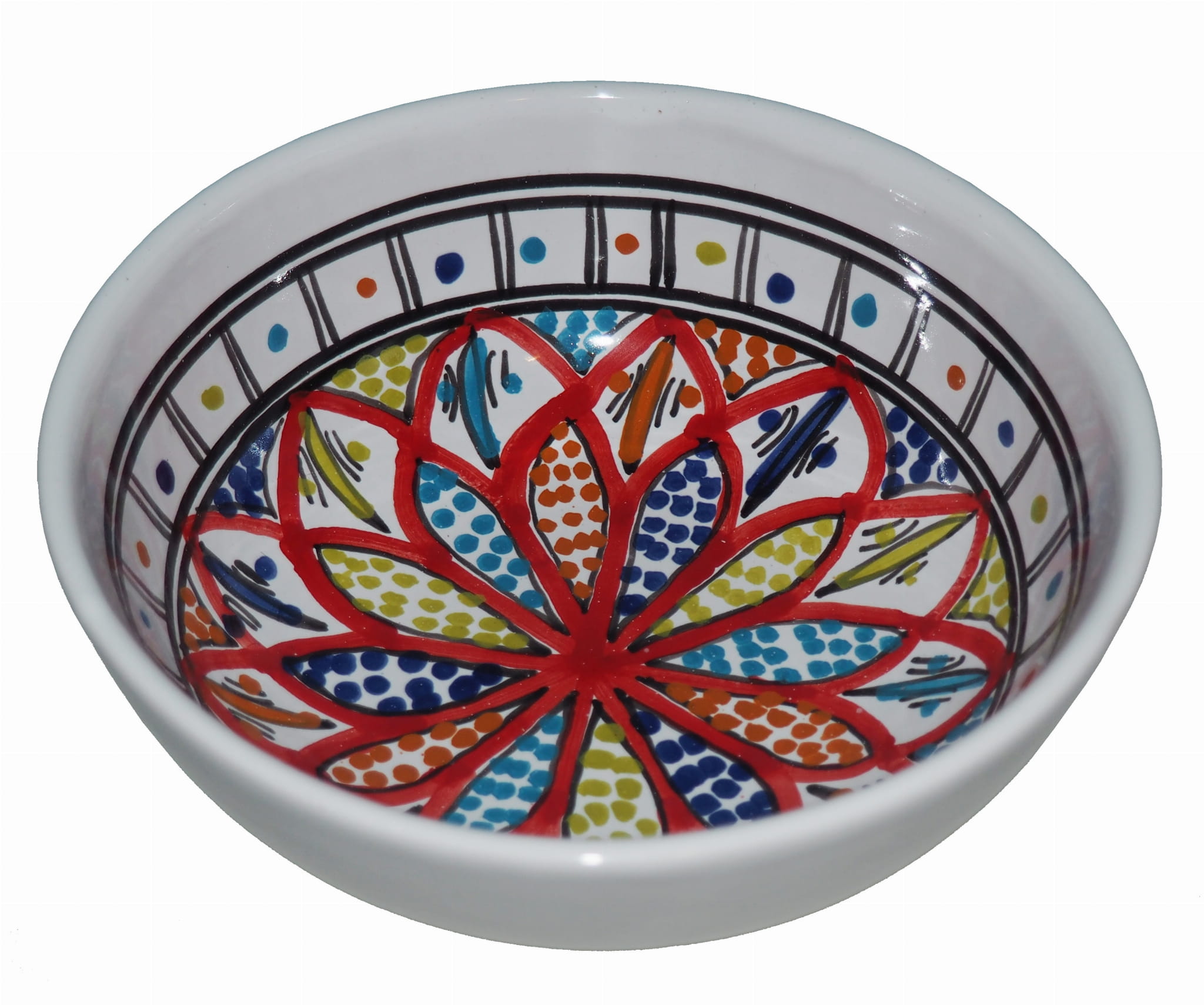 Zwraca uwagę piękne wzornictwo i bogata arabska kolorystyka. Miseczka malowana jest w berberyjskie wzory. Przepiękna, niebanalna ozdoba Twojego stołu prosto z Tunezji.