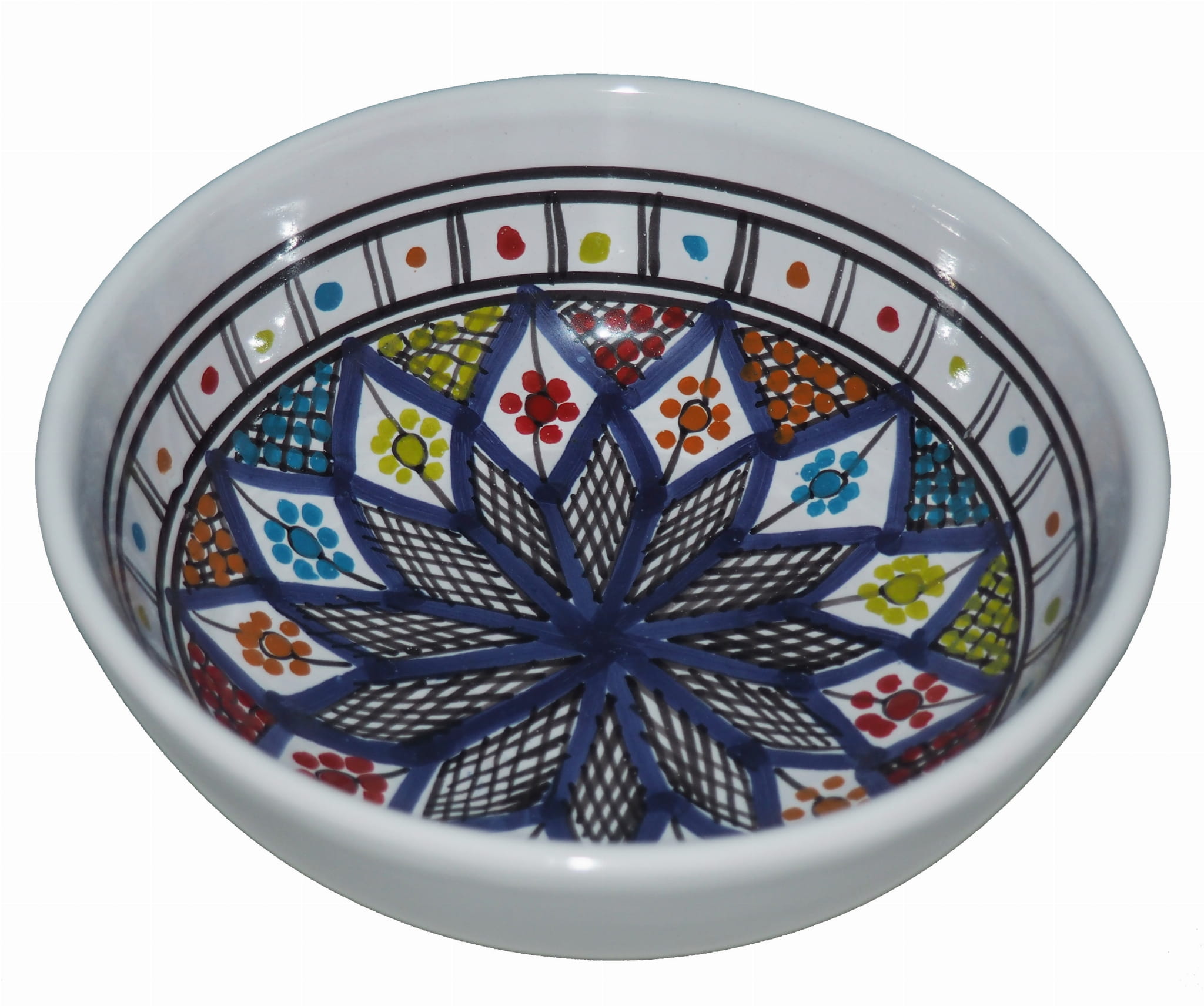 Zwraca uwagę piękne wzornictwo i bogata arabska kolorystyka. Miseczka malowana jest w berberyjskie wzory. Przepiękna, niebanalna ozdoba Twojego stołu prosto z Tunezji.