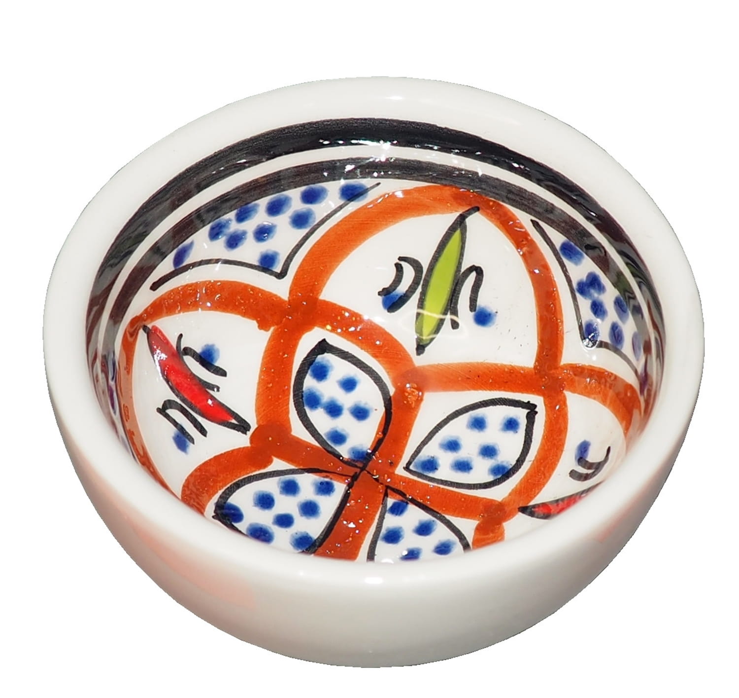 Zwraca uwagę piękne wzornictwo i bogata arabska kolorystyka. Miseczka malowana jest w berberyjskie wzory. Przepiękna, niebanalna ozdoba Twojego stołu - śliczna miseczka prosto z Tunezji.