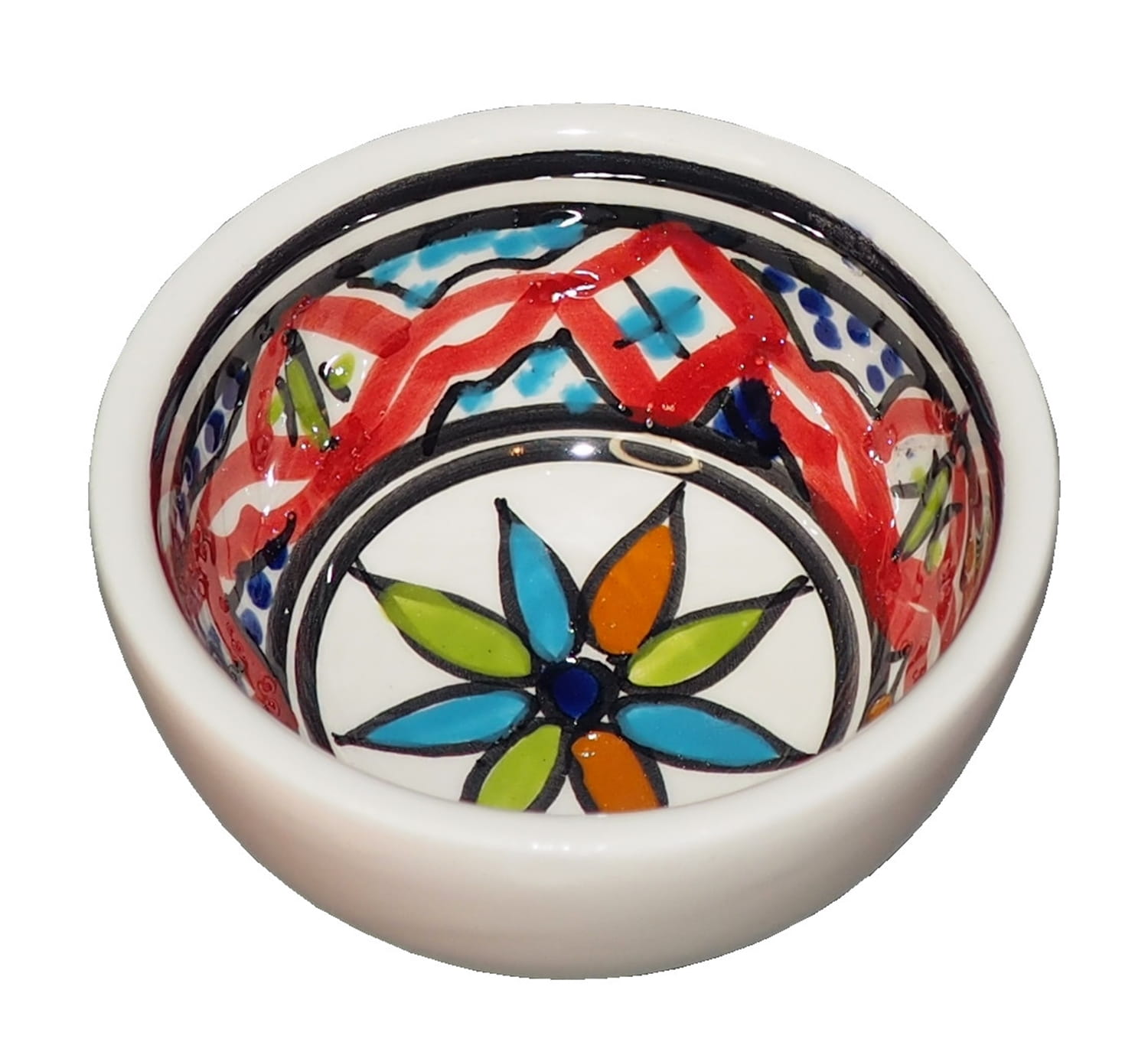Zwraca uwagę piękne wzornictwo i bogata arabska kolorystyka. Miseczka malowana jest w berberyjskie wzory. Przepiękna, niebanalna ozdoba Twojego stołu - śliczna miseczka prosto z Tunezji.