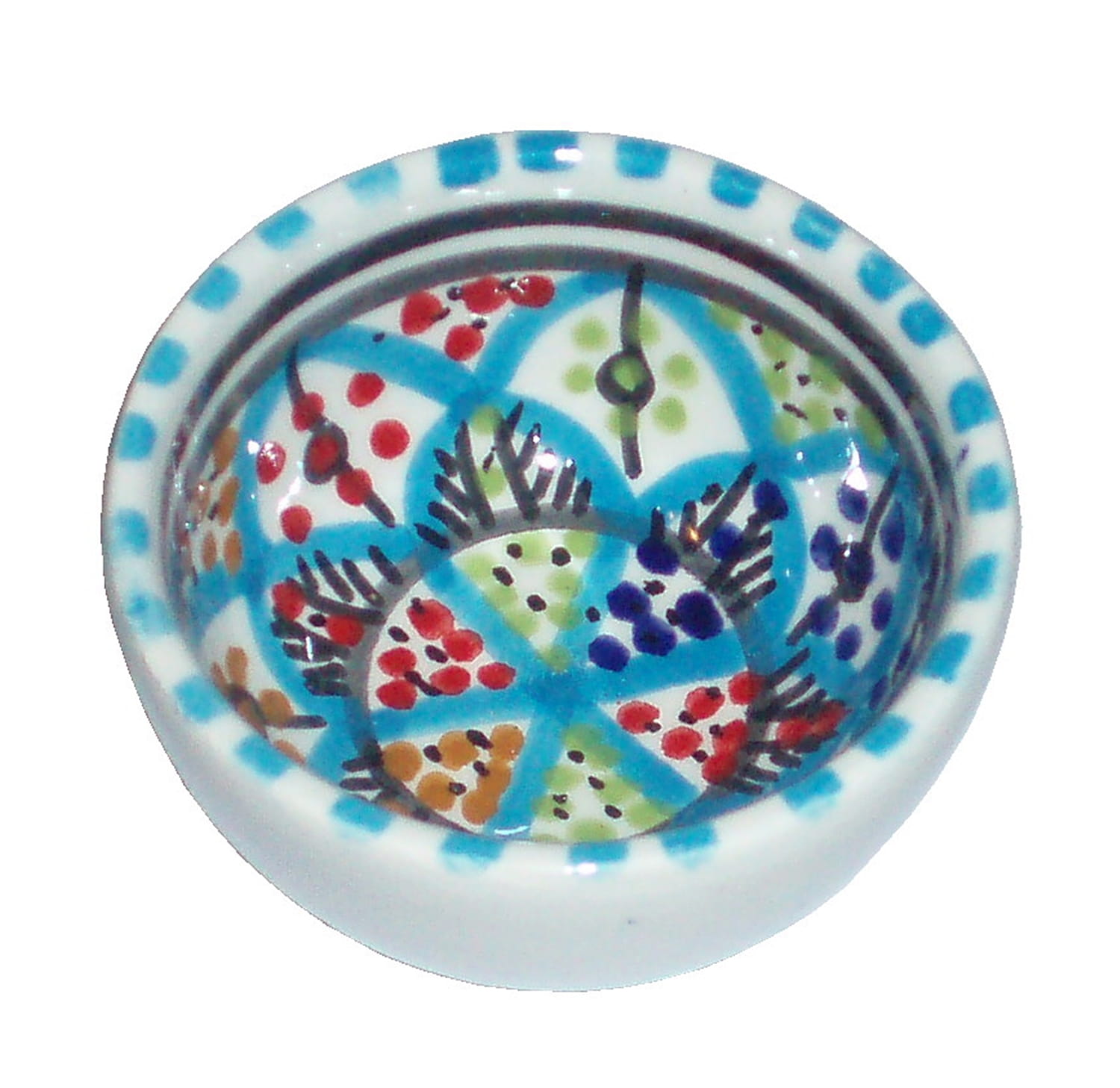 Zwraca uwagę piękne wzornictwo i bogata arabska kolorystyka. Miseczka malowana jest w berberyjskie wzory. Przepiękna, niebanalna ozdoba Twojego stołu - śliczna miseczka prosto z Tunezji.
