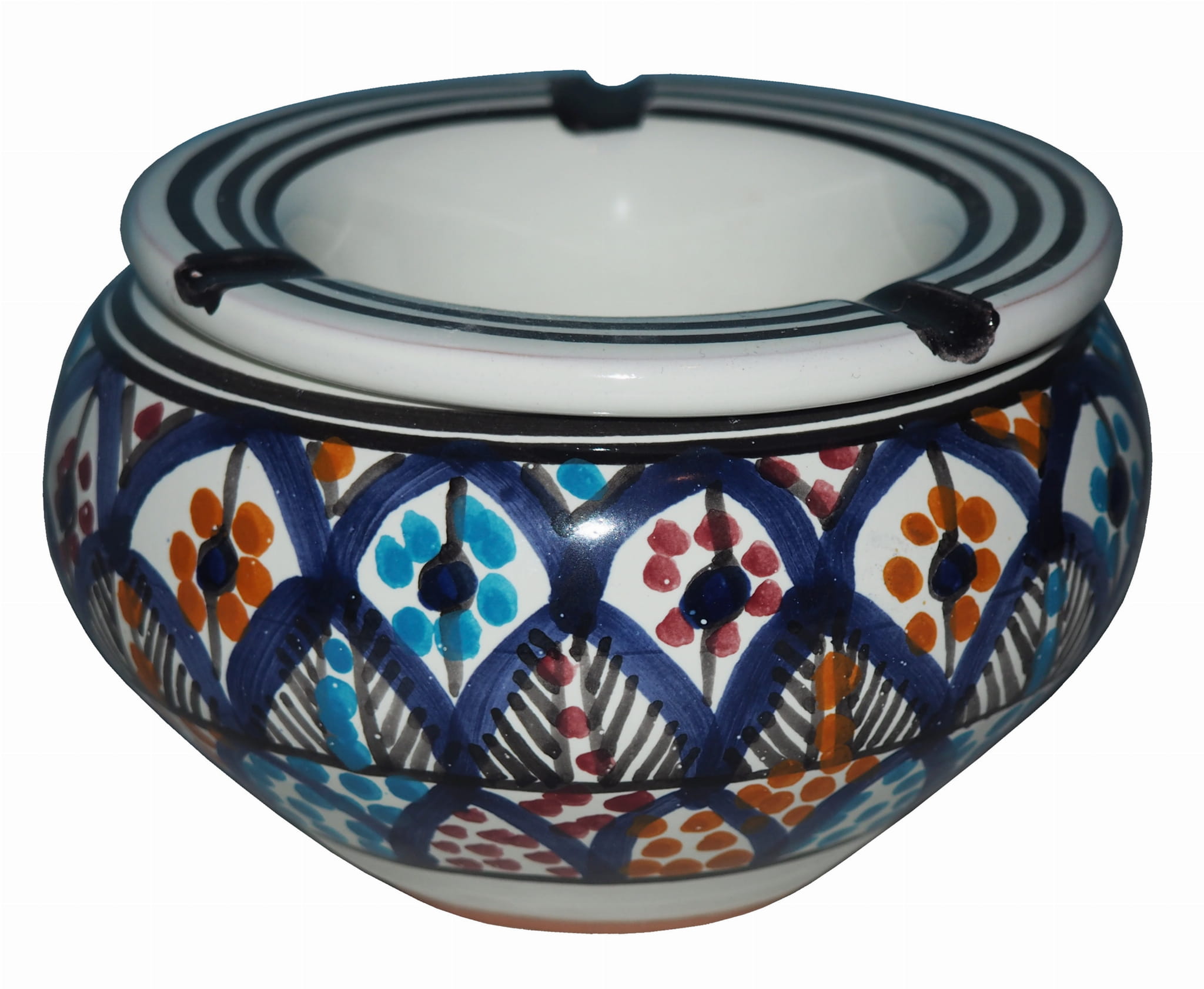 Orientalna popielniczka malowana jest w berberyjskie wzory. Przepiękna, niebanalna ozdoba Twojego mieszkania, ogrodu, ganku. Dekoracyjna, piękna popielniczka prosto z Tunezji, nada każdemu pomieszczeniu ducha orientu.
