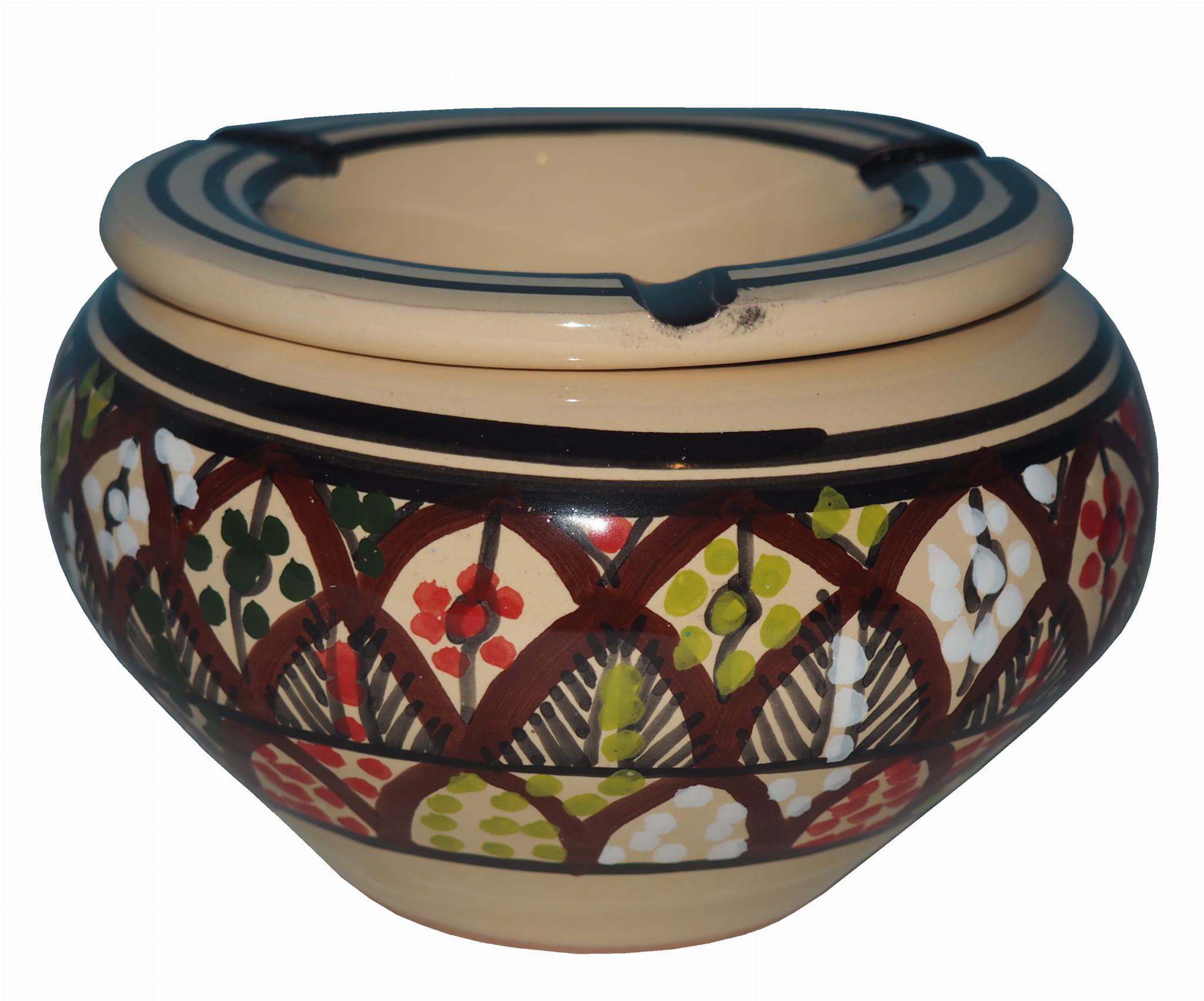 Orientalna popielniczka malowana jest w berberyjskie wzory. Przepiękna, niebanalna ozdoba Twojego mieszkania, ogrodu, ganku. Dekoracyjna, piękna popielniczka prosto z Tunezji, nada każdemu pomieszczeniu ducha orientu.