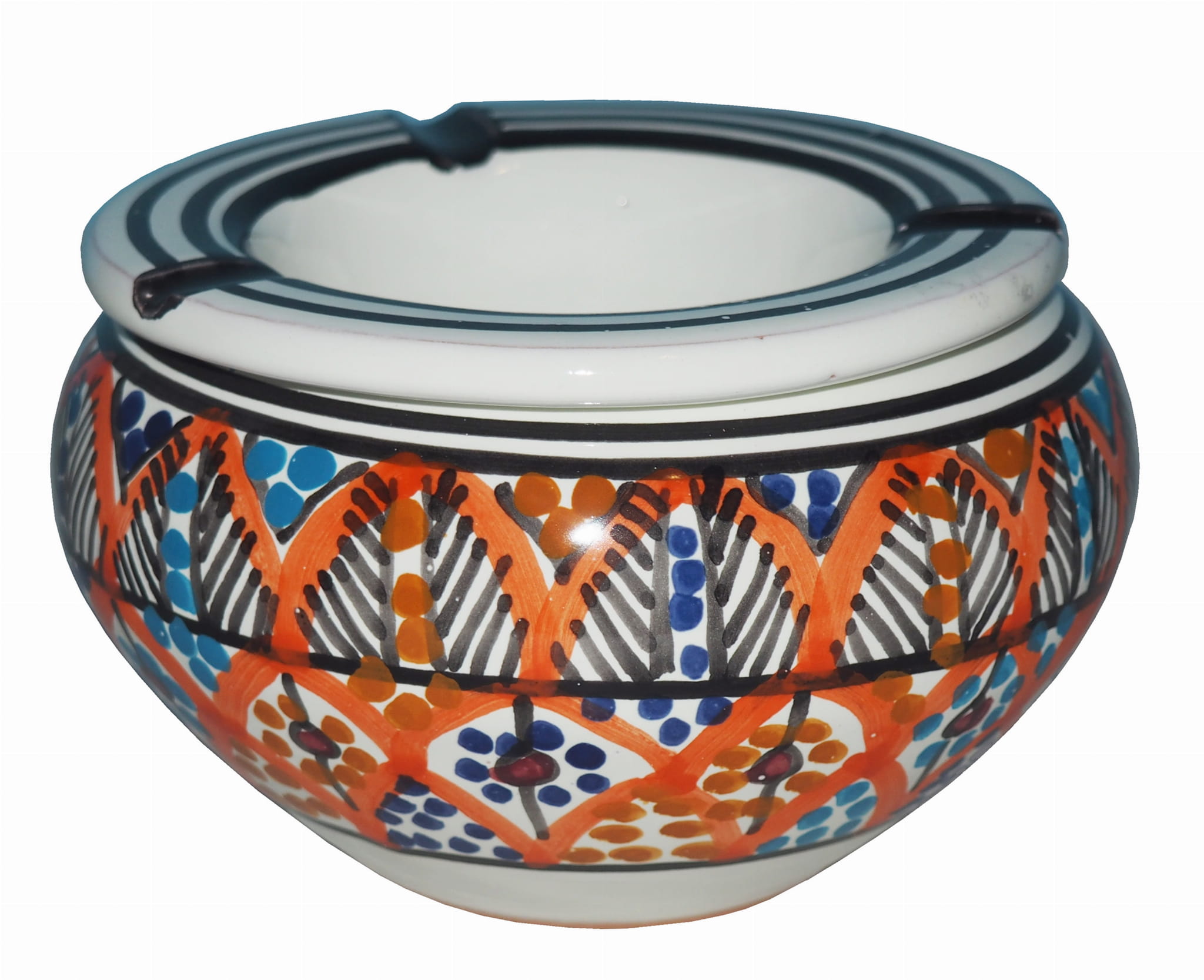 Orientalna popielniczka malowana jest w berberyjskie wzory. Przepiękna, niebanalna ozdoba Twojego mieszkania, ogrodu, ganku. Dekoracyjna, piękna popielniczka prosto z Tunezji, nada każdemu pomieszczeniu ducha orientu.
