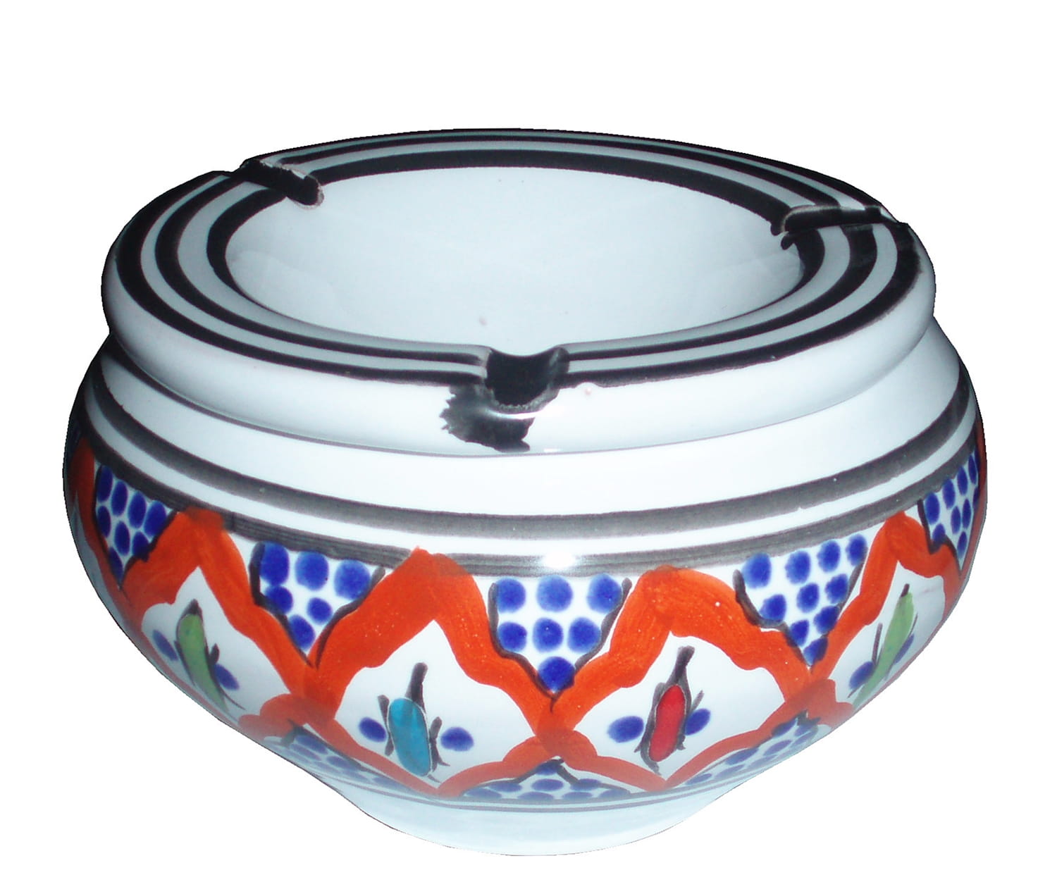 Orientalna popielniczka malowana jest w berberyjskie wzory. Przepiękna, niebanalna ozdoba Twojego mieszkania, ogrodu, ganku. Dekoracyjna, piękna popielniczka prosto z Tunezji, nada każdemu pomieszczeniu ducha orientu.