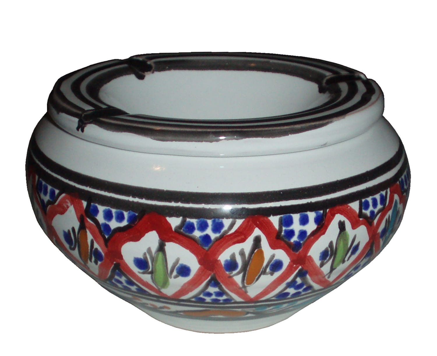Orientalna popielniczka malowana jest w berberyjskie wzory. Przepiękna, niebanalna ozdoba Twojego mieszkania, ogrodu, ganku. Dekoracyjna, piękna popielniczka prosto z Tunezji, nada każdemu pomieszczeniu ducha orientu.