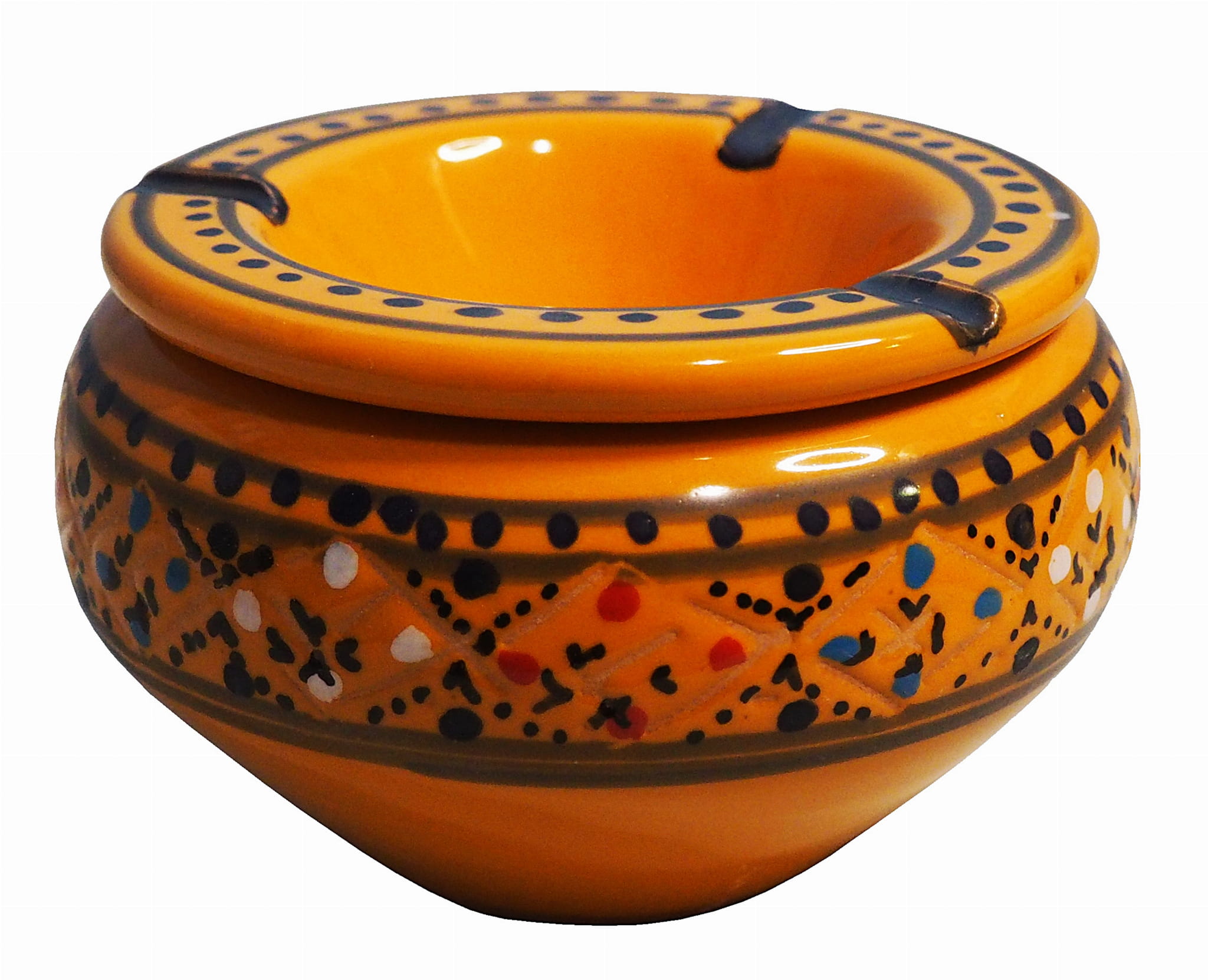 Orientalna popielniczka malowana jest w berberyjskie wzory. Przepiękna, niebanalna ozdoba Twojego mieszkania, ogrodu, ganku. Dekoracyjna, piękna popielniczka prosto z Tunezji, nada każdemu pomieszczeniu ducha orientu.