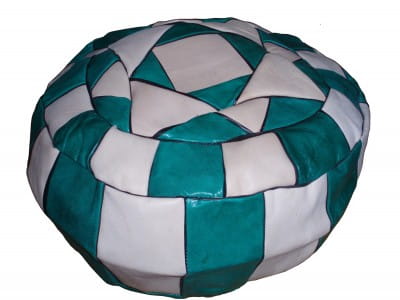 Pufa w naprzemienne łaty - białe i zielone.