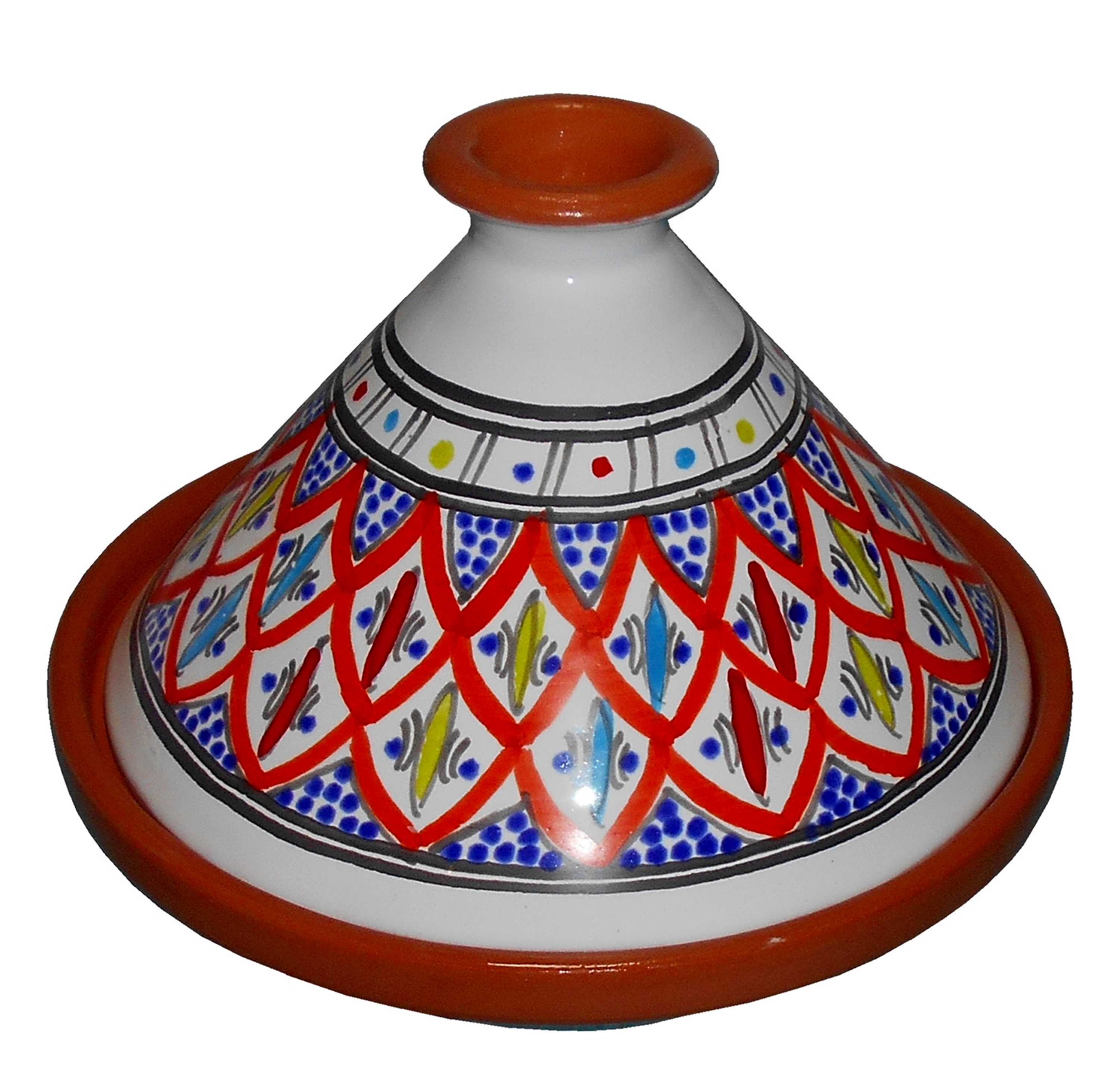 Ten ceramiczny komplet składa się z 2 części - stożkowatej pokrywki o wysokości 13,5 cm oraz podstawki o średnicy 23 cm i wysokości 5,5 cm. Łącznie tajine ma 19 cm wysokości.