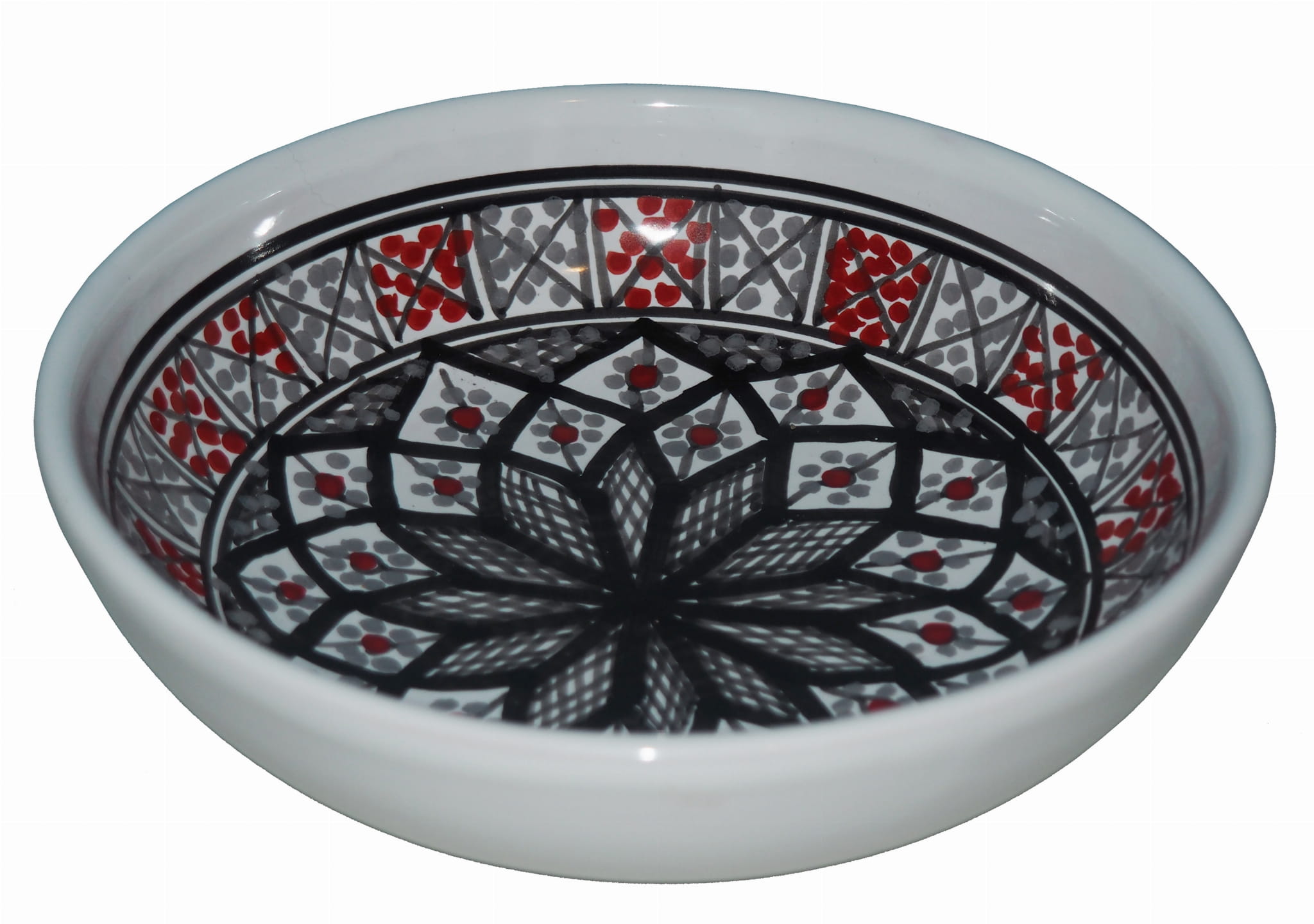 Orientalny talerz malowany jest w berberyjskie wzory. Przepiękna, niebanalna ozdoba Twojego stołu prosto z Tunezji.
