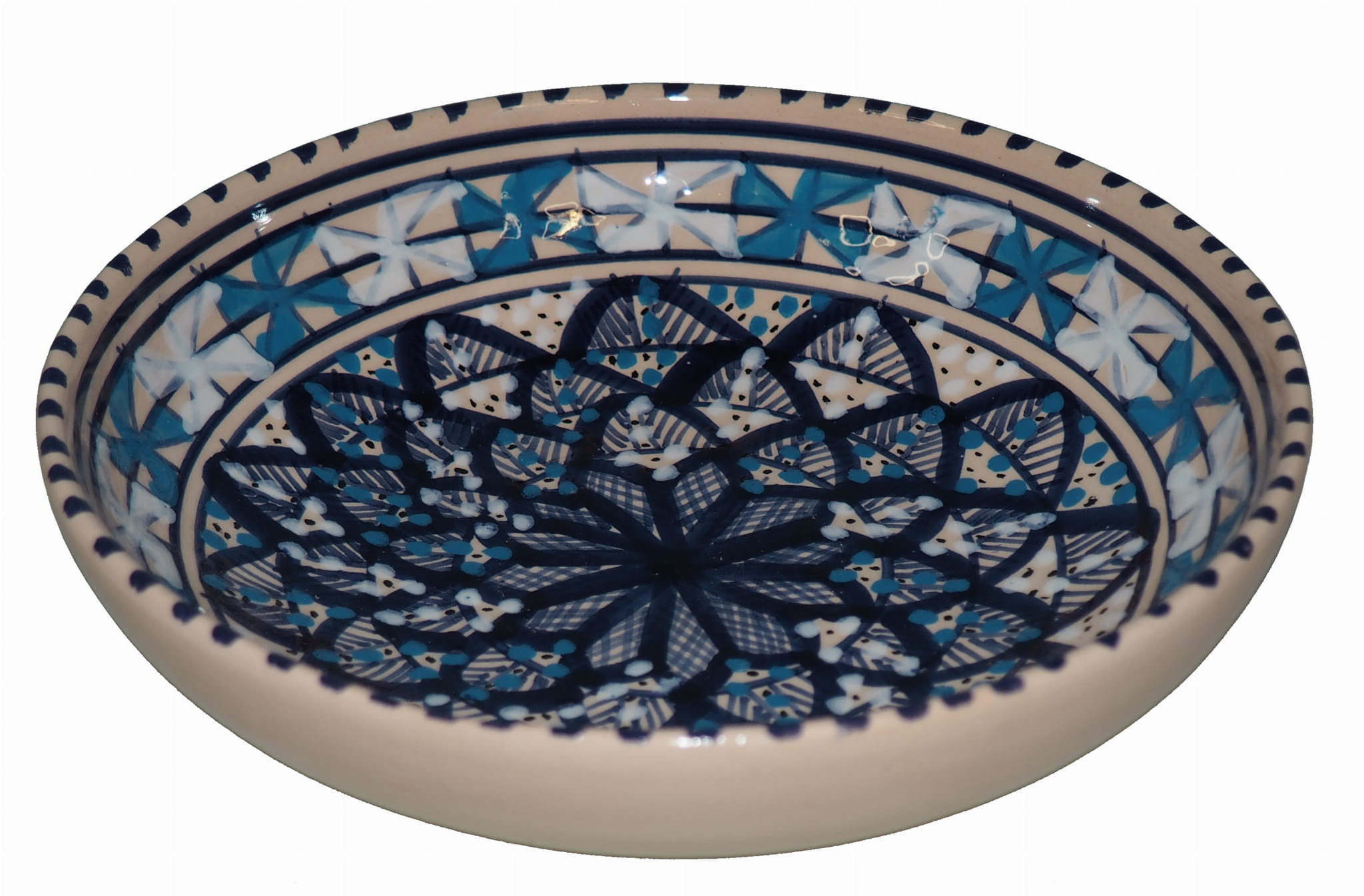 Orientalny talerz malowany jest w berberyjskie wzory. Przepiękna, niebanalna ozdoba Twojego stołu prosto z Tunezji.