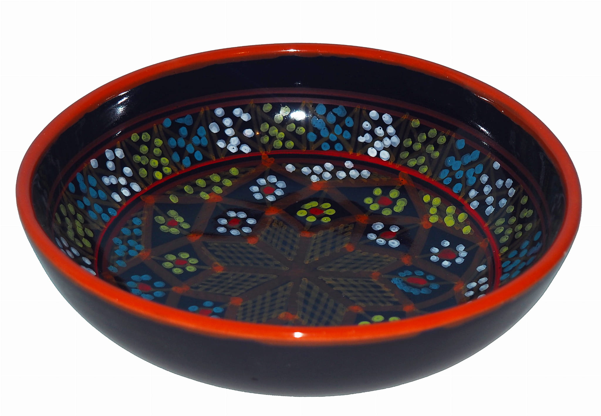 Orientalny talerz malowany jest w berberyjskie wzory. Przepiękna, niebanalna ozdoba Twojego stołu prosto z Tunezji.