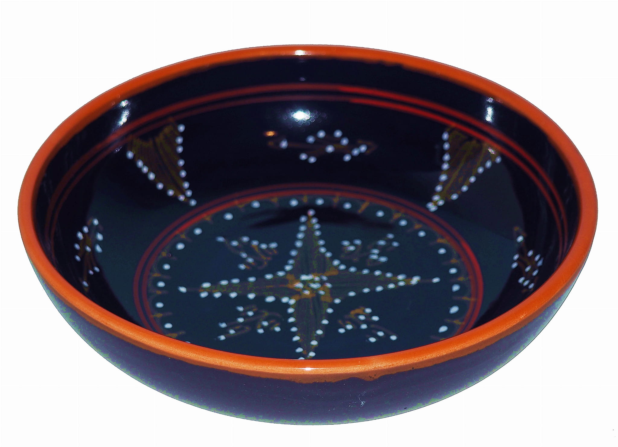 Orientalny talerz malowany jest w berberyjskie wzory. Przepiękna, niebanalna ozdoba Twojego stołu prosto z Tunezji.