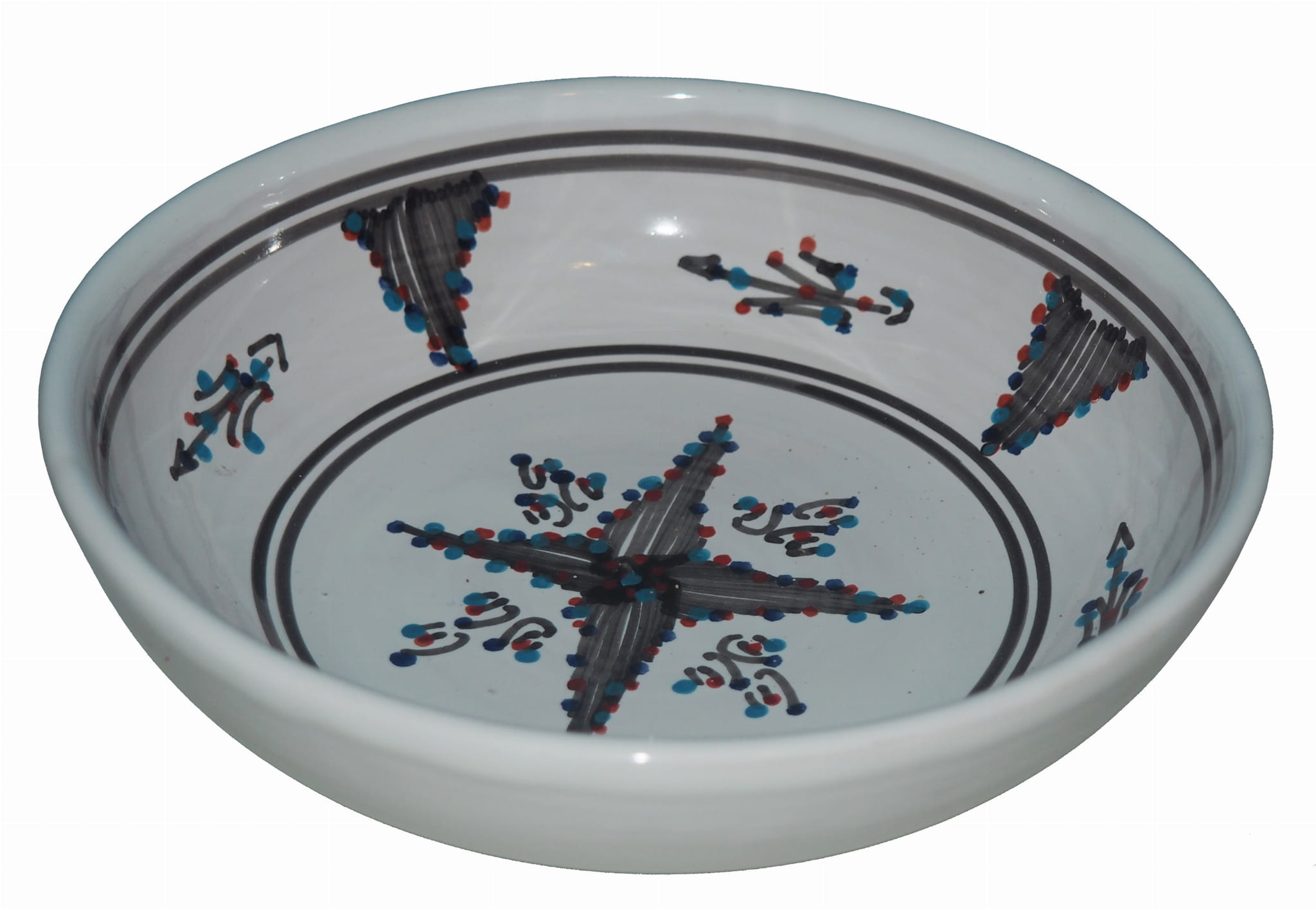 Orientalny talerz malowany jest w berberyjskie wzory. Przepiękna, niebanalna ozdoba Twojego stołu prosto z Tunezji.