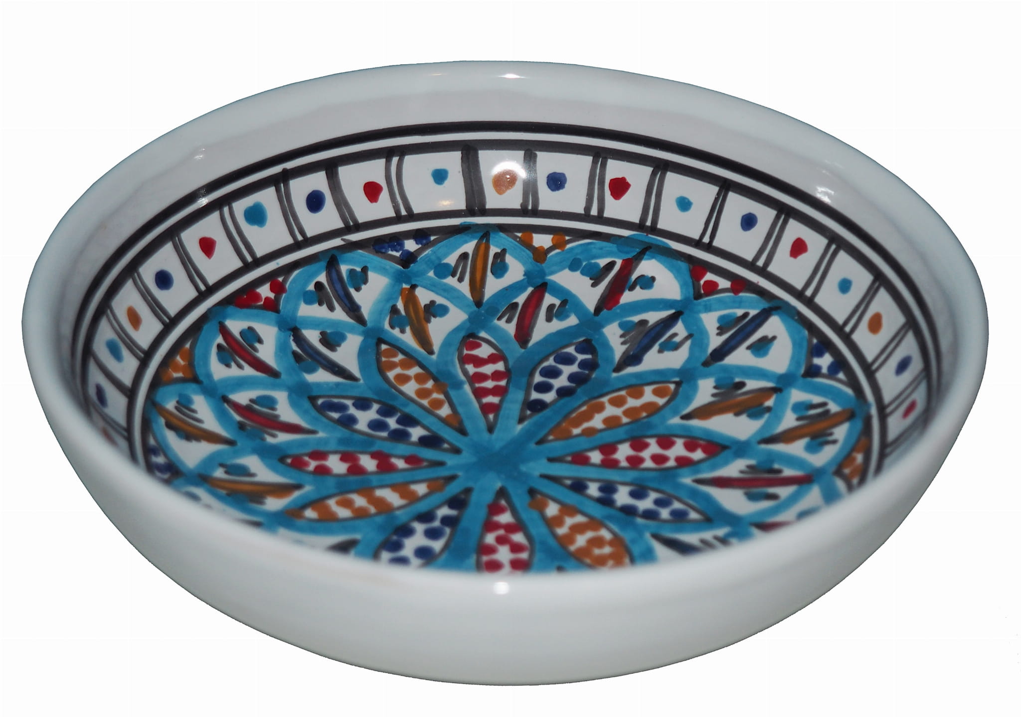 Orientalny talerz malowany jest w berberyjskie wzory. Przepiękna, niebanalna ozdoba Twojego stołu prosto z Tunezji.