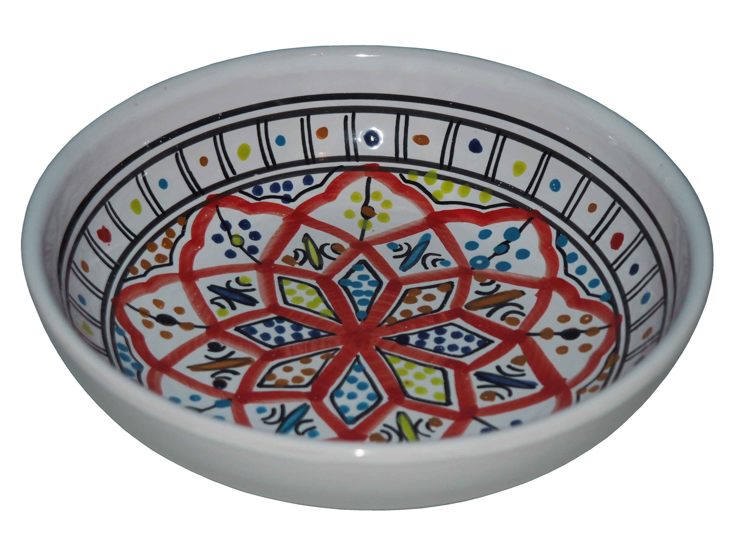 Orientalny talerz malowany jest w berberyjskie wzory. Przepiękna, niebanalna ozdoba Twojego stołu prosto z Tunezji.