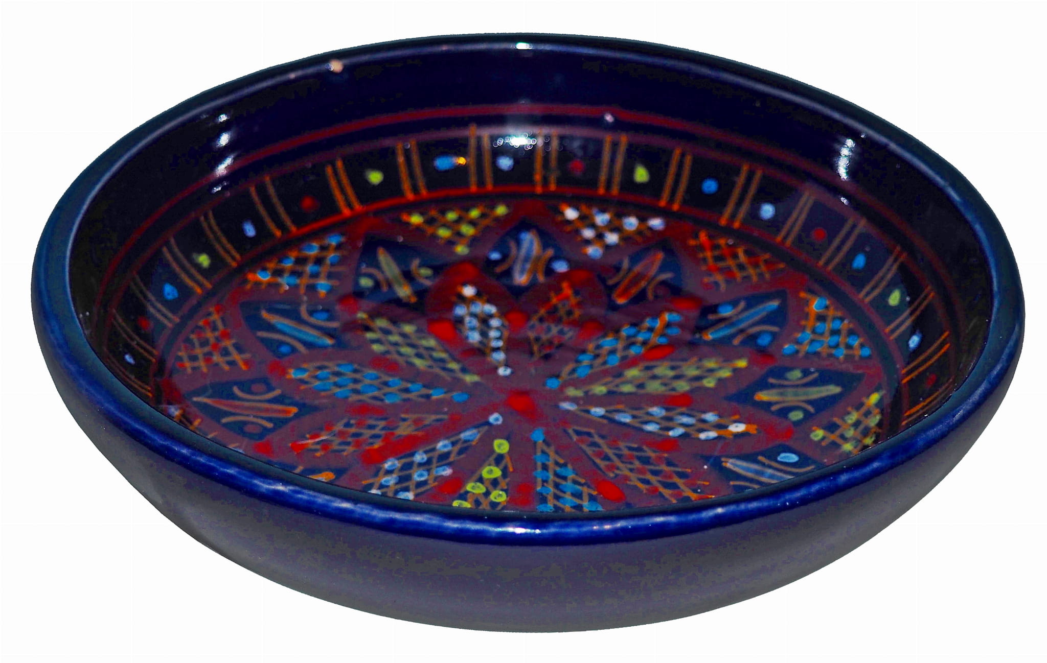 Orientalny talerz malowany jest w berberyjskie wzory. Przepiękna, niebanalna ozdoba Twojego stołu prosto z Tunezji.