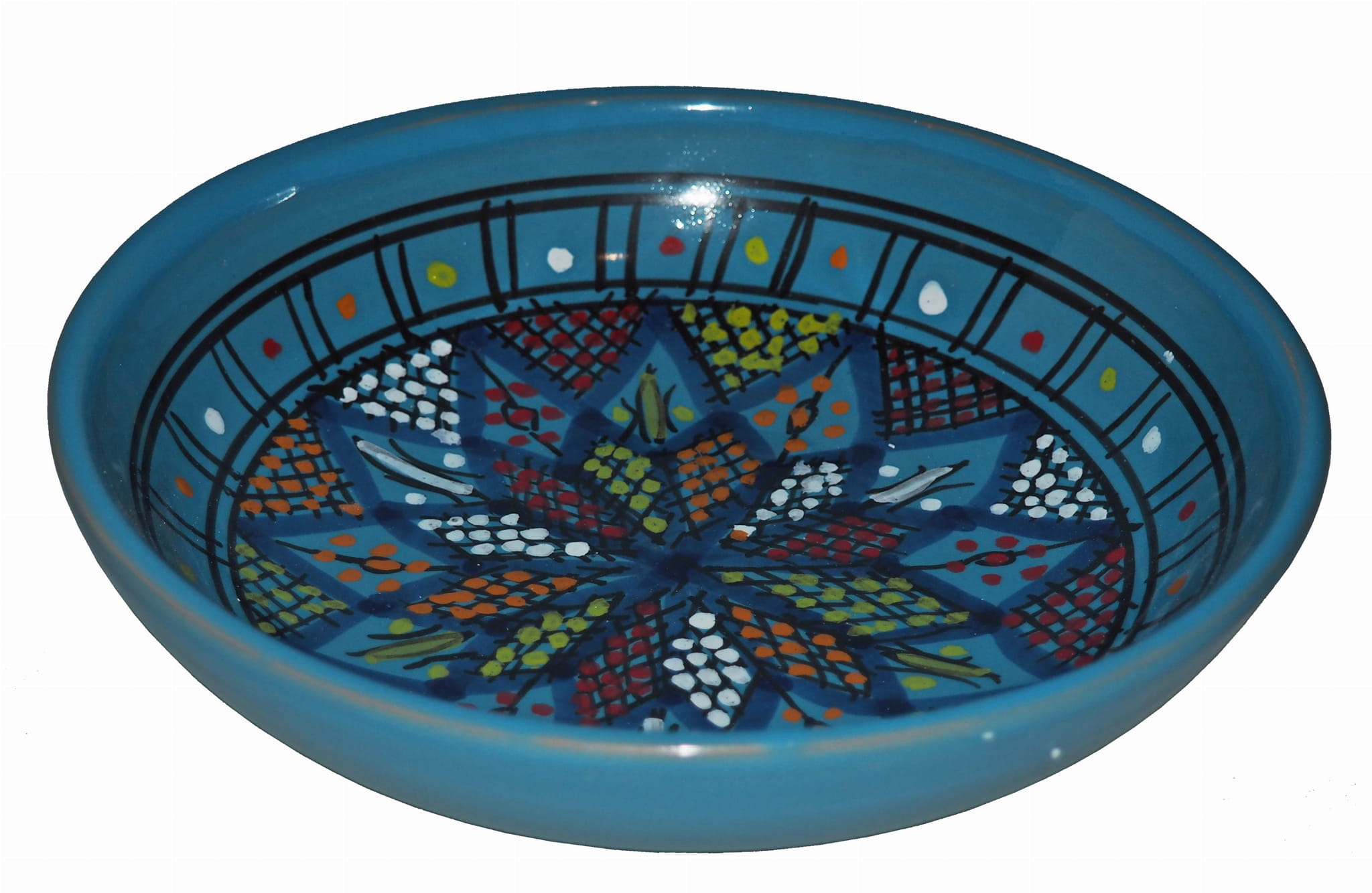 Orientalny talerz malowany jest w berberyjskie wzory. Przepiękna, niebanalna ozdoba Twojego stołu prosto z Tunezji.