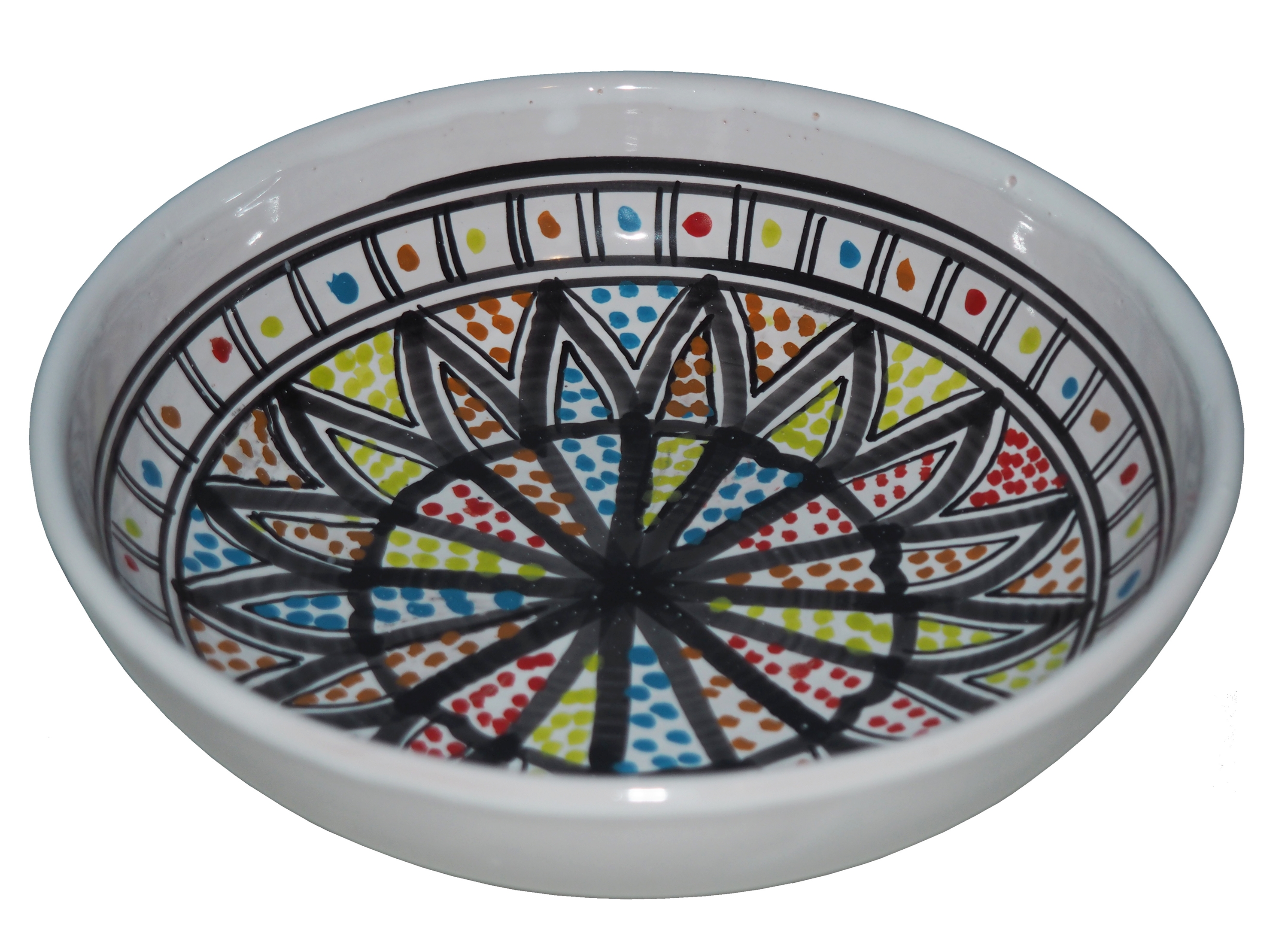 Orientalny talerz malowany jest w berberyjskie wzory. Przepiękna, niebanalna ozdoba Twojego stołu prosto z Tunezji.