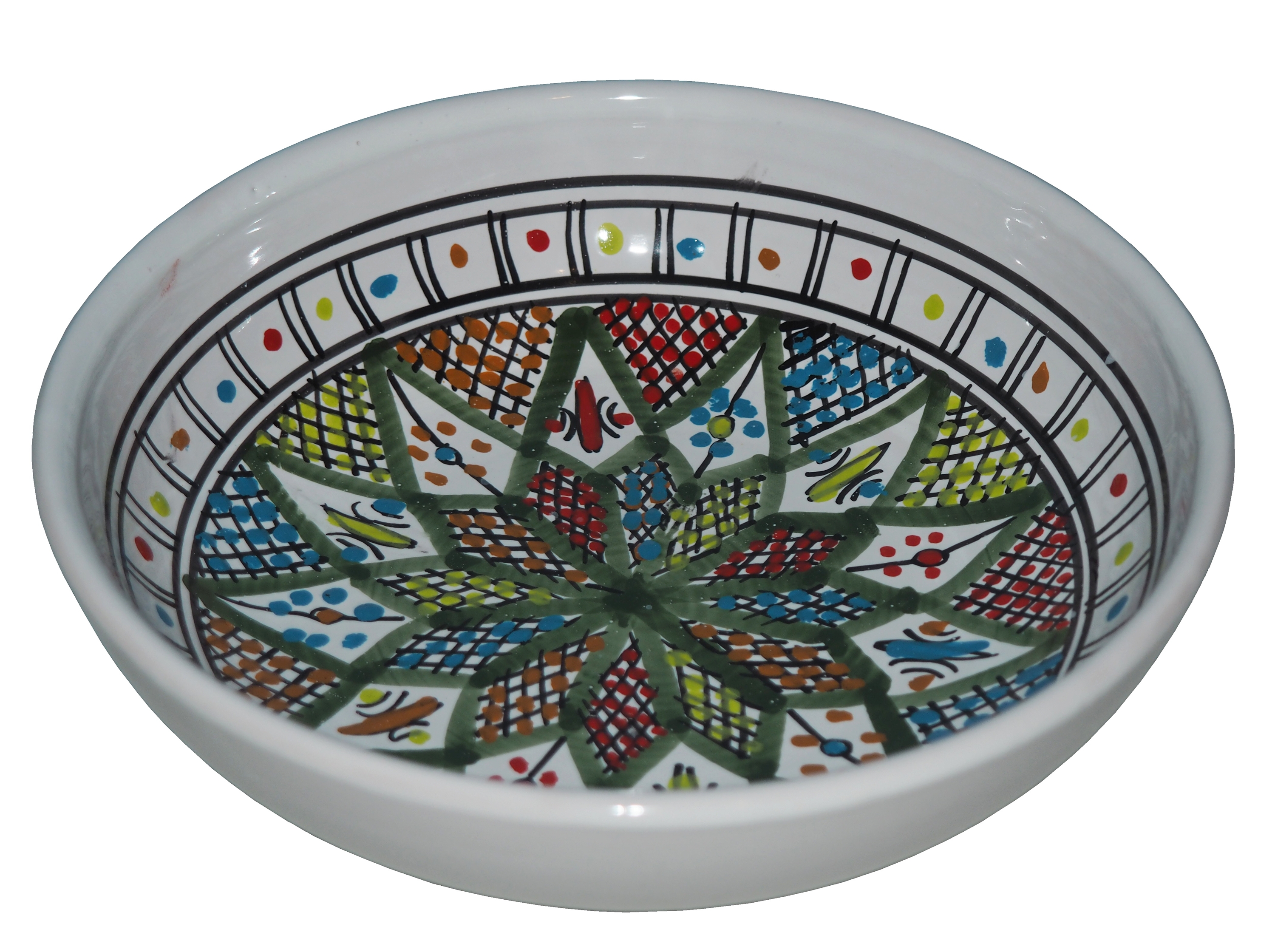 Orientalny talerz malowany jest w berberyjskie wzory. Przepiękna, niebanalna ozdoba Twojego stołu prosto z Tunezji.