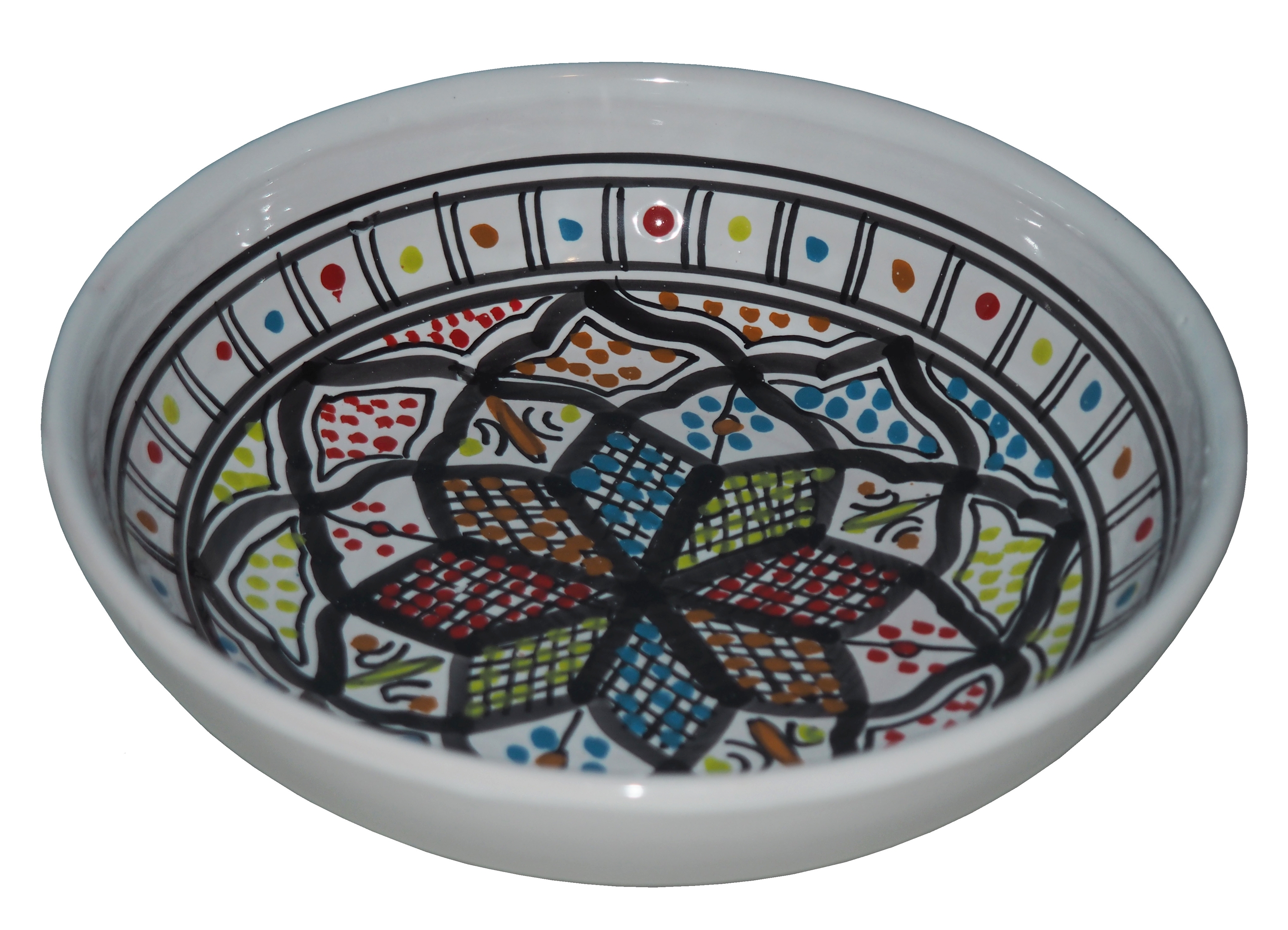Orientalny talerz malowany jest w berberyjskie wzory. Przepiękna, niebanalna ozdoba Twojego stołu prosto z Tunezji.