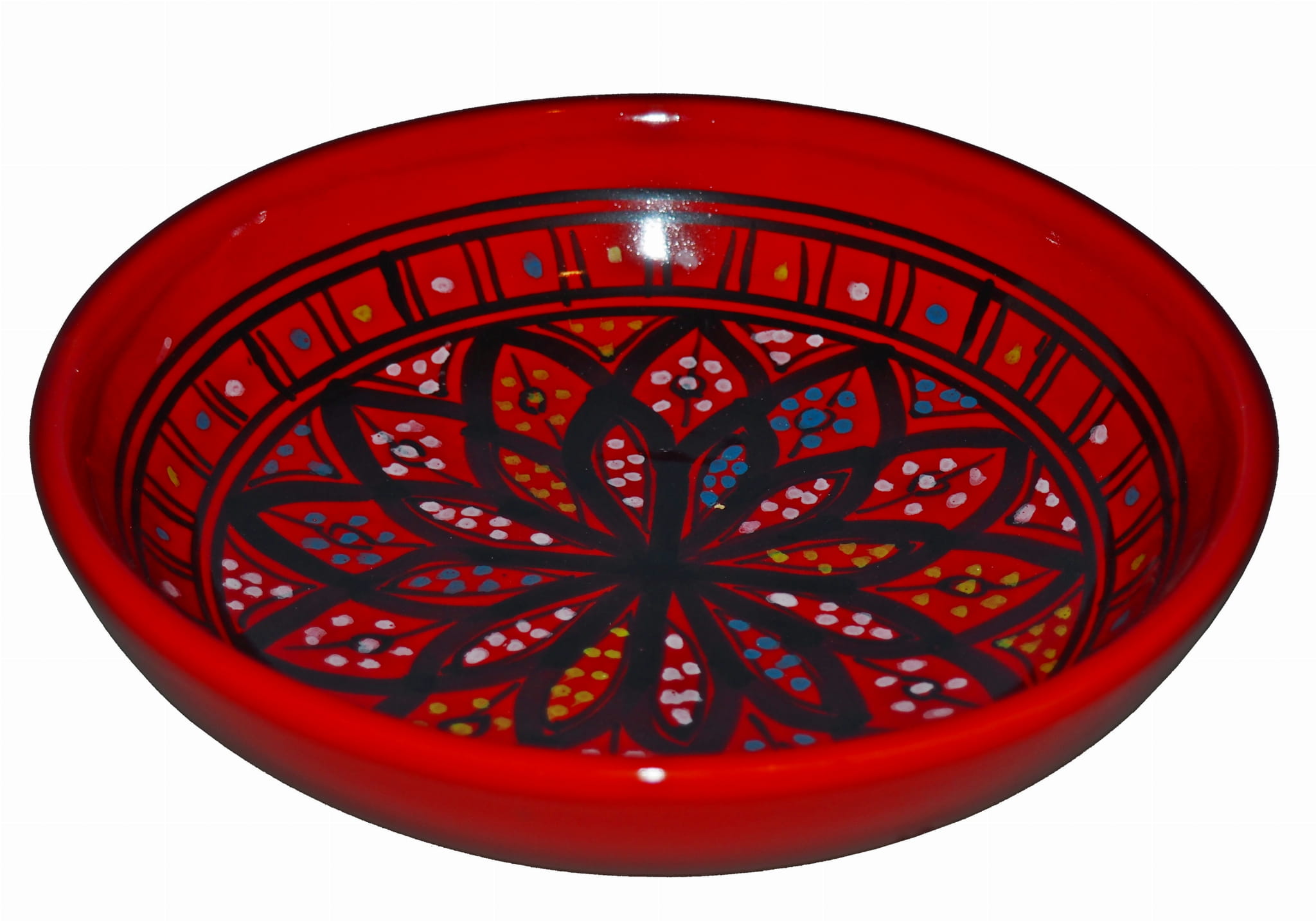 Orientalny talerz malowany jest w berberyjskie wzory. Przepiękna, niebanalna ozdoba Twojego stołu prosto z Tunezji.