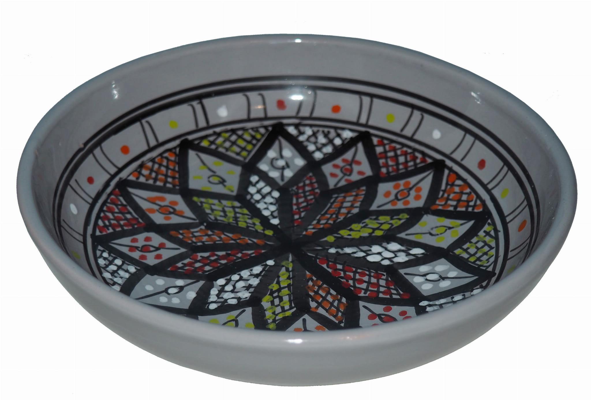 Orientalny talerz malowany jest w berberyjskie wzory. Przepiękna, niebanalna ozdoba Twojego stołu prosto z Tunezji.