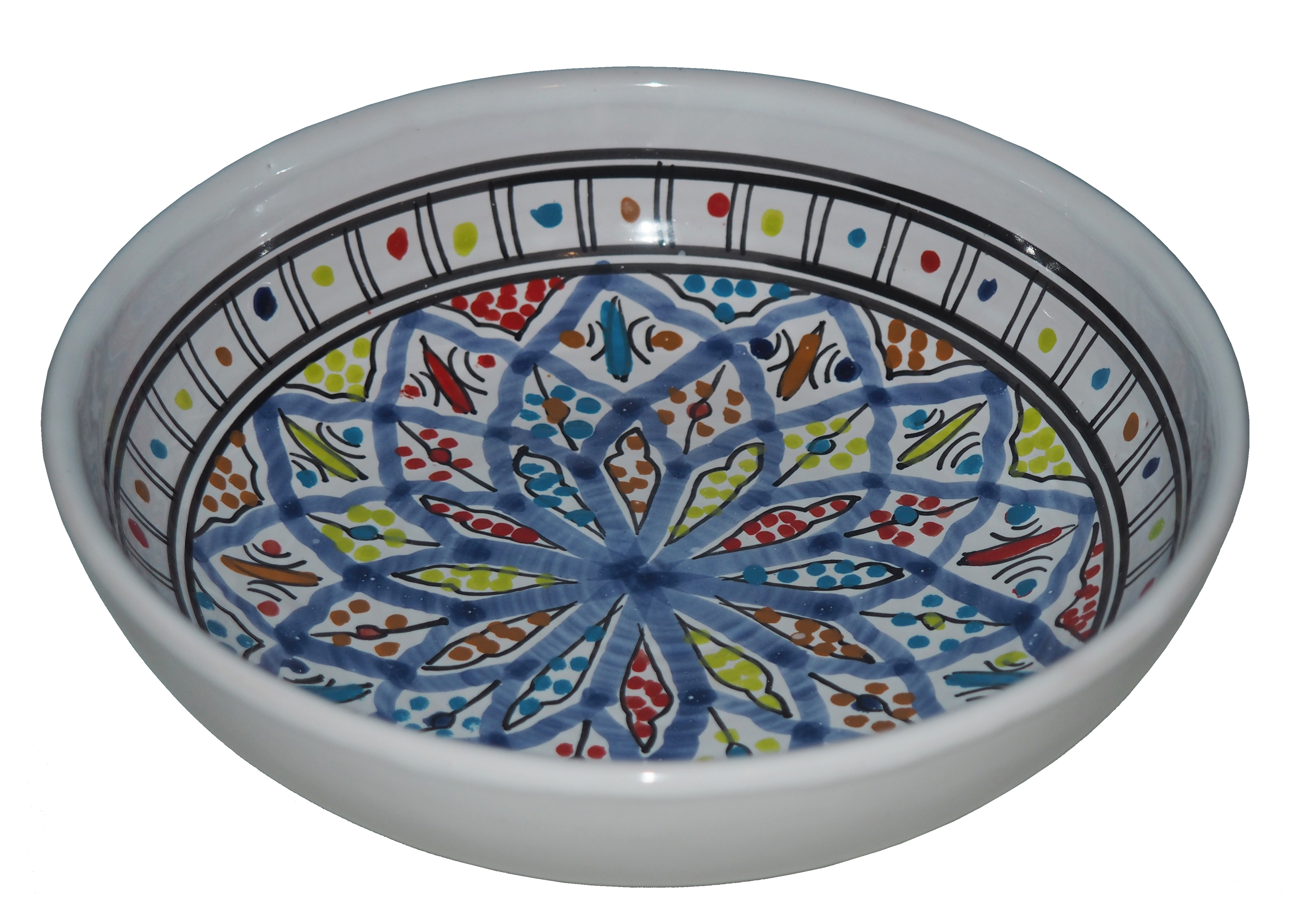 Orientalny talerz malowany jest w berberyjskie wzory. Przepiękna, niebanalna ozdoba Twojego stołu prosto z Tunezji.