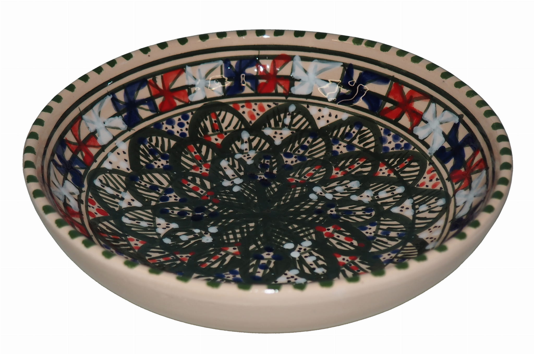Orientalny talerz malowany jest w berberyjskie wzory. Przepiękna, niebanalna ozdoba Twojego stołu prosto z Tunezji.