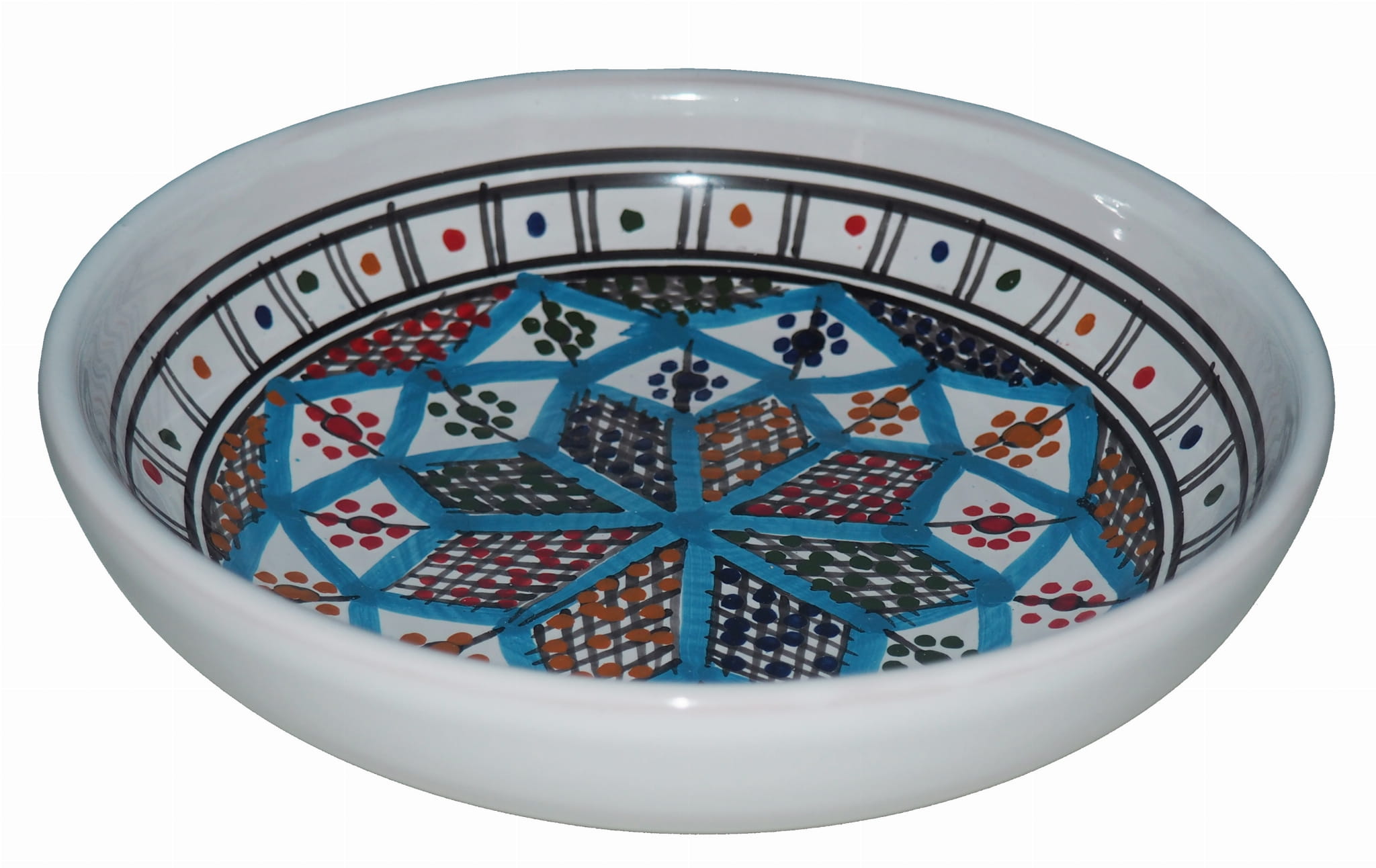 Orientalny talerz malowany jest w berberyjskie wzory. Przepiękna, niebanalna ozdoba Twojego stołu prosto z Tunezji.