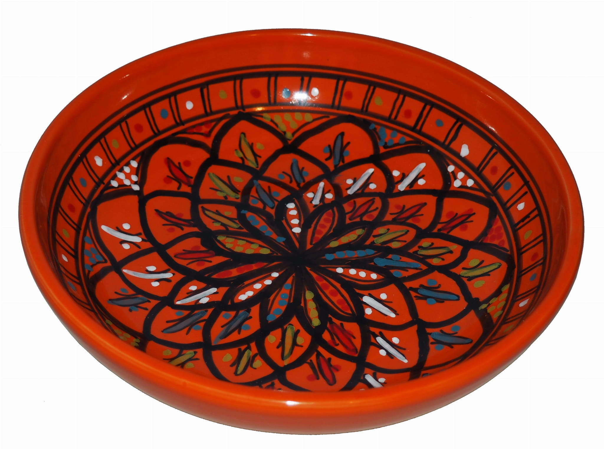 Ten orientalny talerz malowany jest w berberyjskie wzory. Przepiękna, niebanalna ozdoba Twojego stołu - ozdobna i funkcjonalna ceramika prosto z Tunezji.