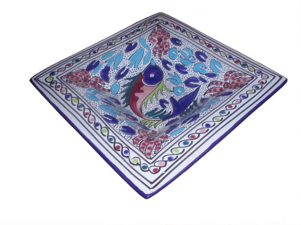 Piękny, oryginalny, głęboki kwadratowy talerz z uniwersalnym motywem zarówno w islamie jak i chrześcijaństwie - rybą.