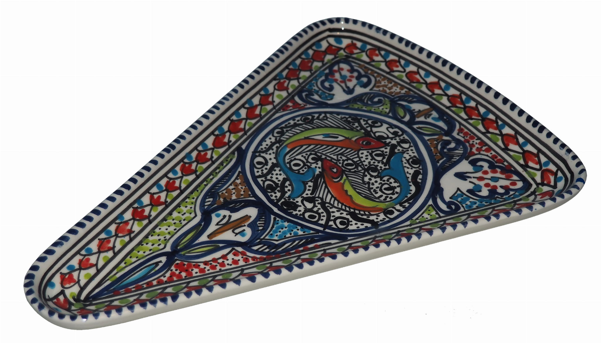 Ten orientalny talerz malowany jest w berberyjskie wzory. Przepiękna, niebanalna ozdoba Twojego stołu - ozdobna i funkcjonalna ceramika prosto z Tunezji.