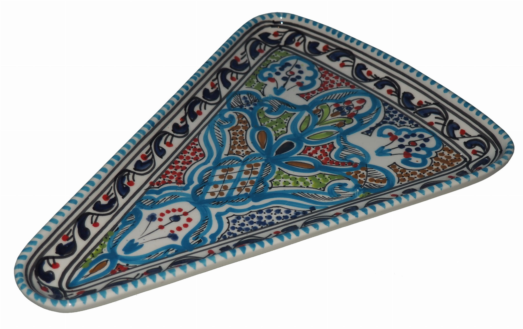 Ten orientalny talerz malowany jest w berberyjskie wzory. Przepiękna, niebanalna ozdoba Twojego stołu - ozdobna i funkcjonalna ceramika prosto z Tunezji.