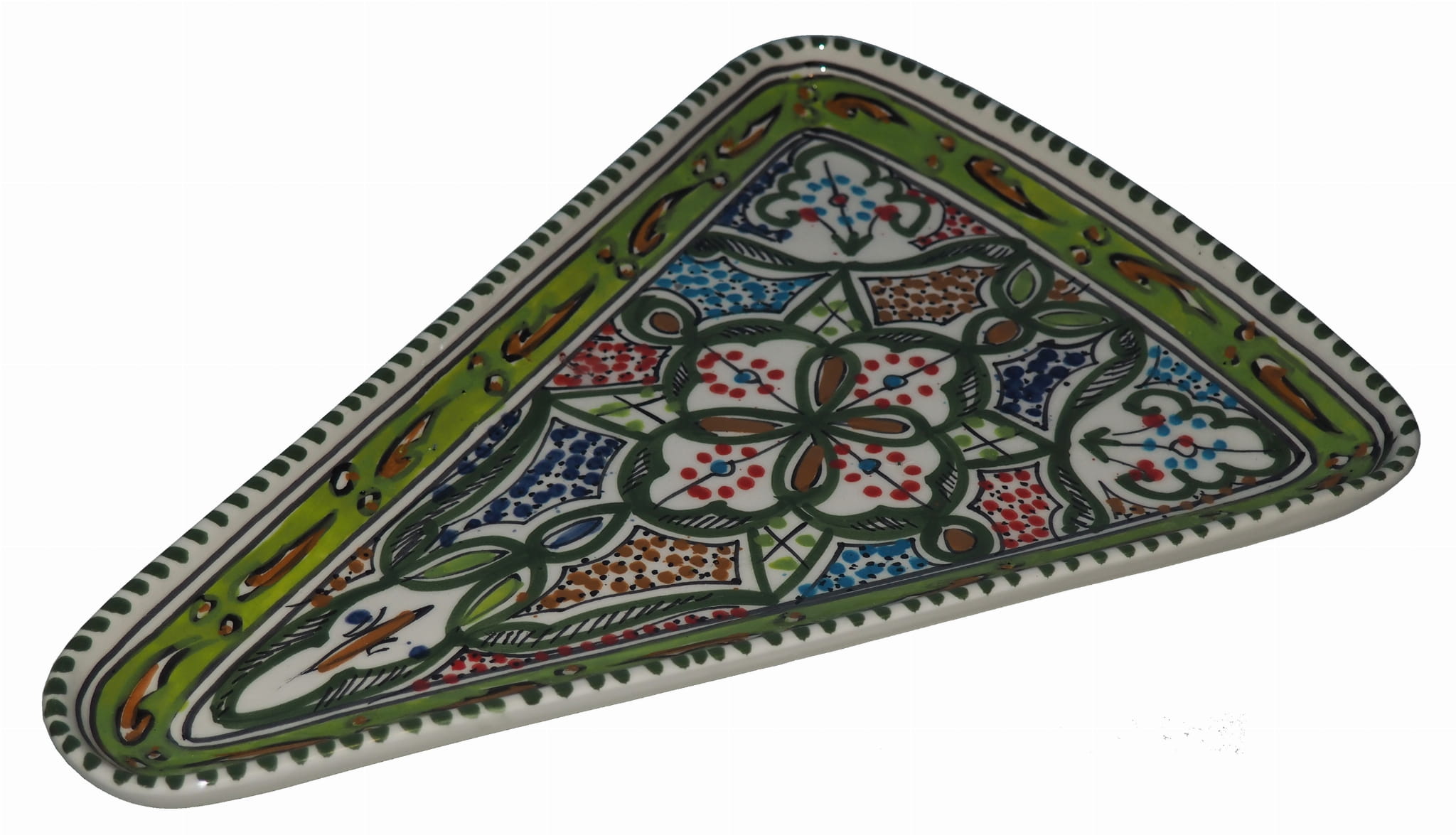 Ten orientalny talerz malowany jest w berberyjskie wzory. Przepiękna, niebanalna ozdoba Twojego stołu - ozdobna i funkcjonalna ceramika prosto z Tunezji.