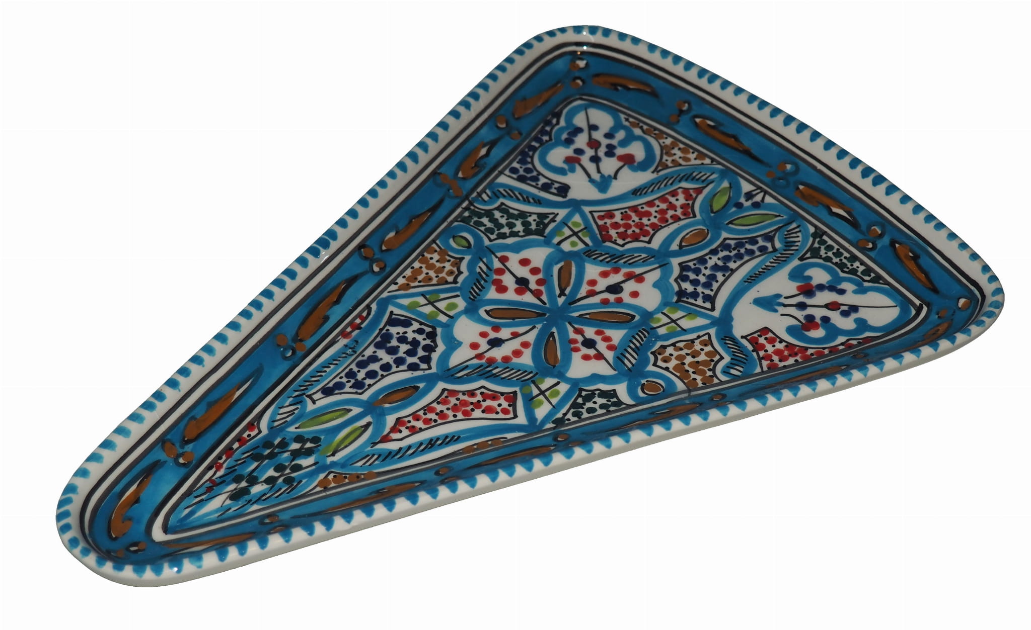 Ten orientalny talerz malowany jest w berberyjskie wzory. Przepiękna, niebanalna ozdoba Twojego stołu - ozdobna i funkcjonalna ceramika prosto z Tunezji.