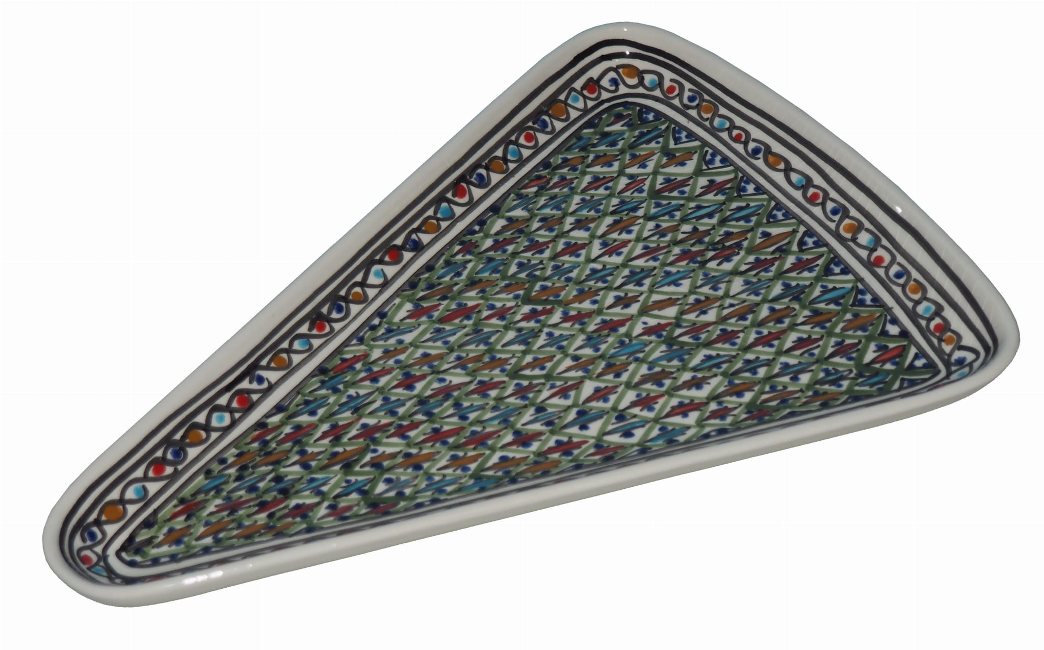 Ten orientalny talerz malowany jest w berberyjskie wzory. Przepiękna, niebanalna ozdoba Twojego stołu - ozdobna i funkcjonalna ceramika prosto z Tunezji.