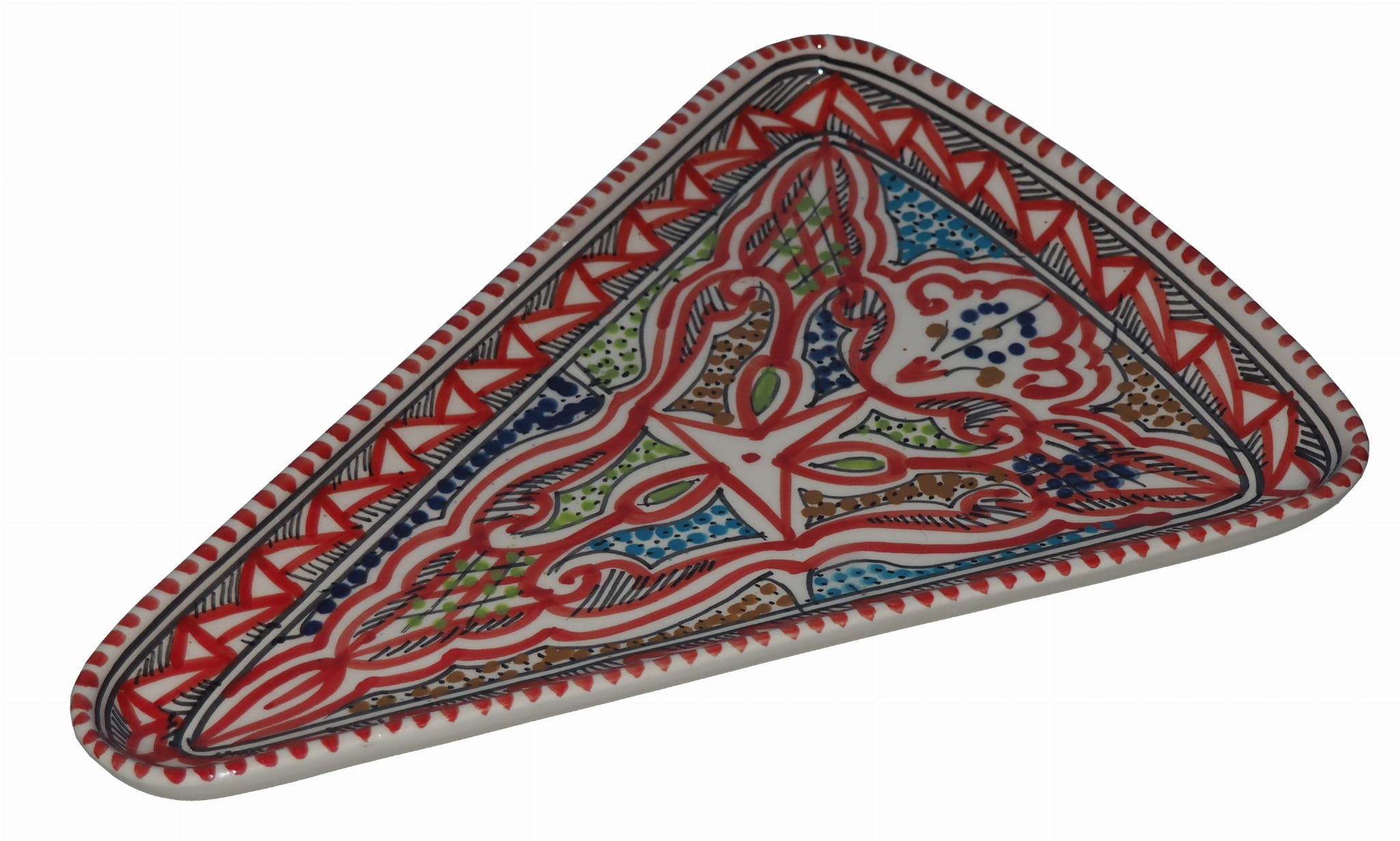 Ten orientalny talerz malowany jest w berberyjskie wzory. Przepiękna, niebanalna ozdoba Twojego stołu - ozdobna i funkcjonalna ceramika prosto z Tunezji.