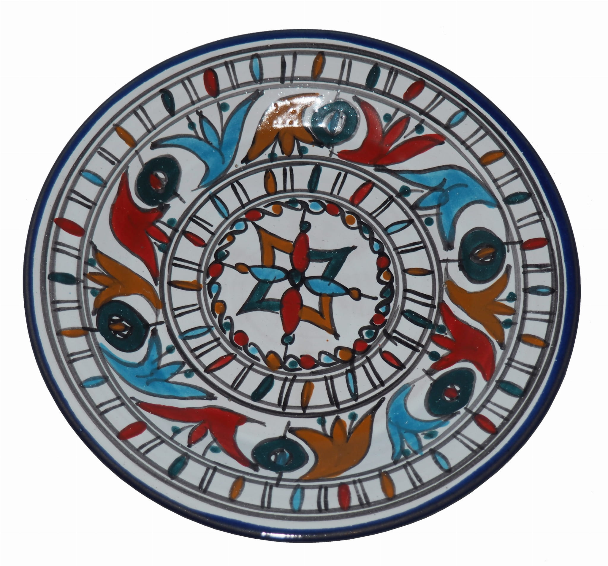 Ten orientalny talerz malowany jest w berberyjskie wzory. Przepiękna, niebanalna ozdoba Twojego stołu prosto z Tunezji.
