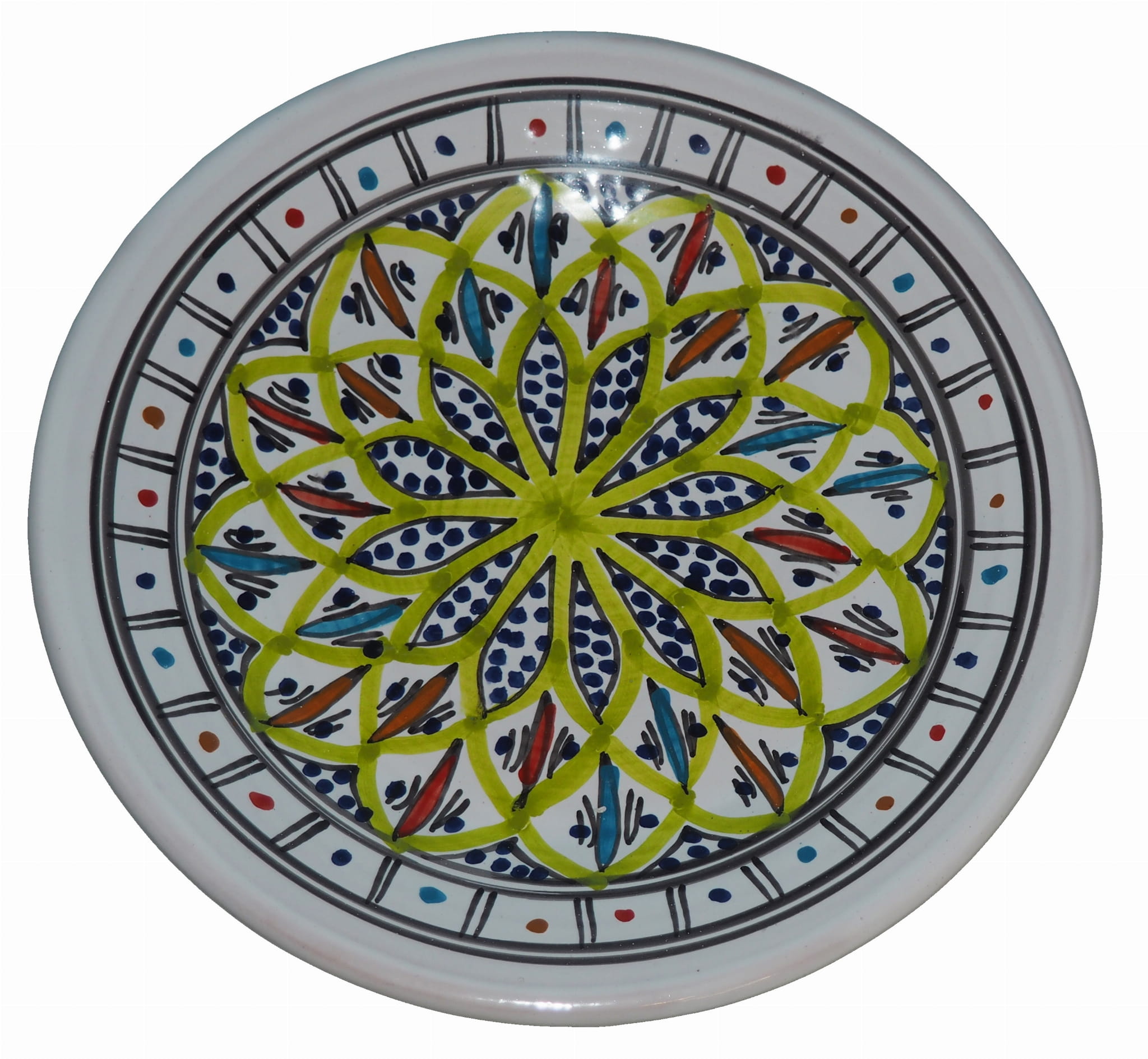 Ten orientalny talerz malowany jest w berberyjskie wzory. Przepiękna, niebanalna ozdoba Twojego stołu prosto z Tunezji.