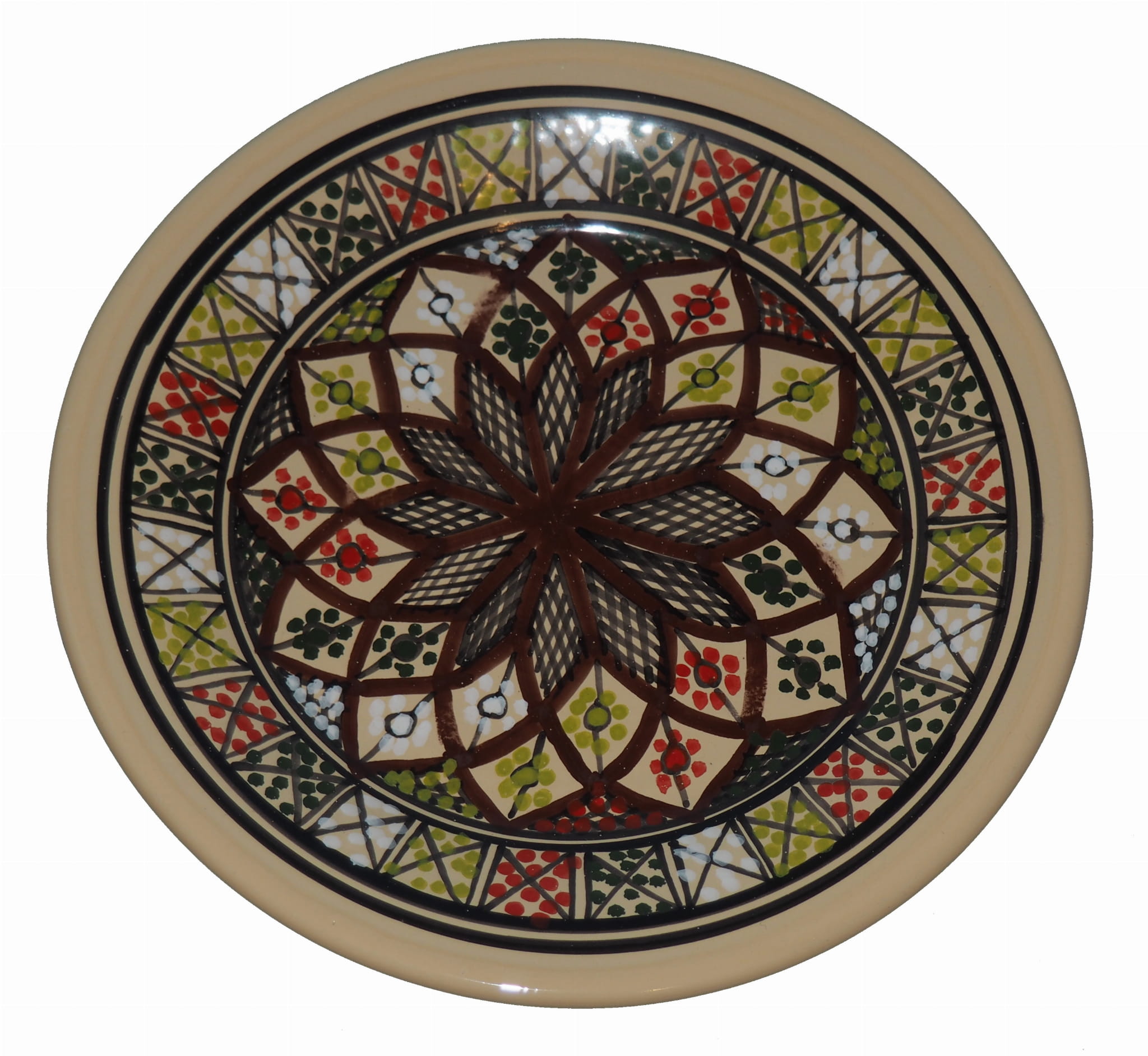Ten orientalny talerz malowany jest w berberyjskie wzory. Przepiękna, niebanalna ozdoba Twojego stołu prosto z Tunezji.